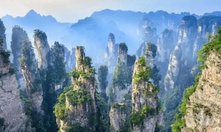 - 张家界:位于湖南张家界市,以独特的石柱地貌和原始森林而著称。奇峰异石拔地而起,云雾在山间缭绕,仿佛是人间仙境,也是电影《阿凡达》中悬浮山的原型地。