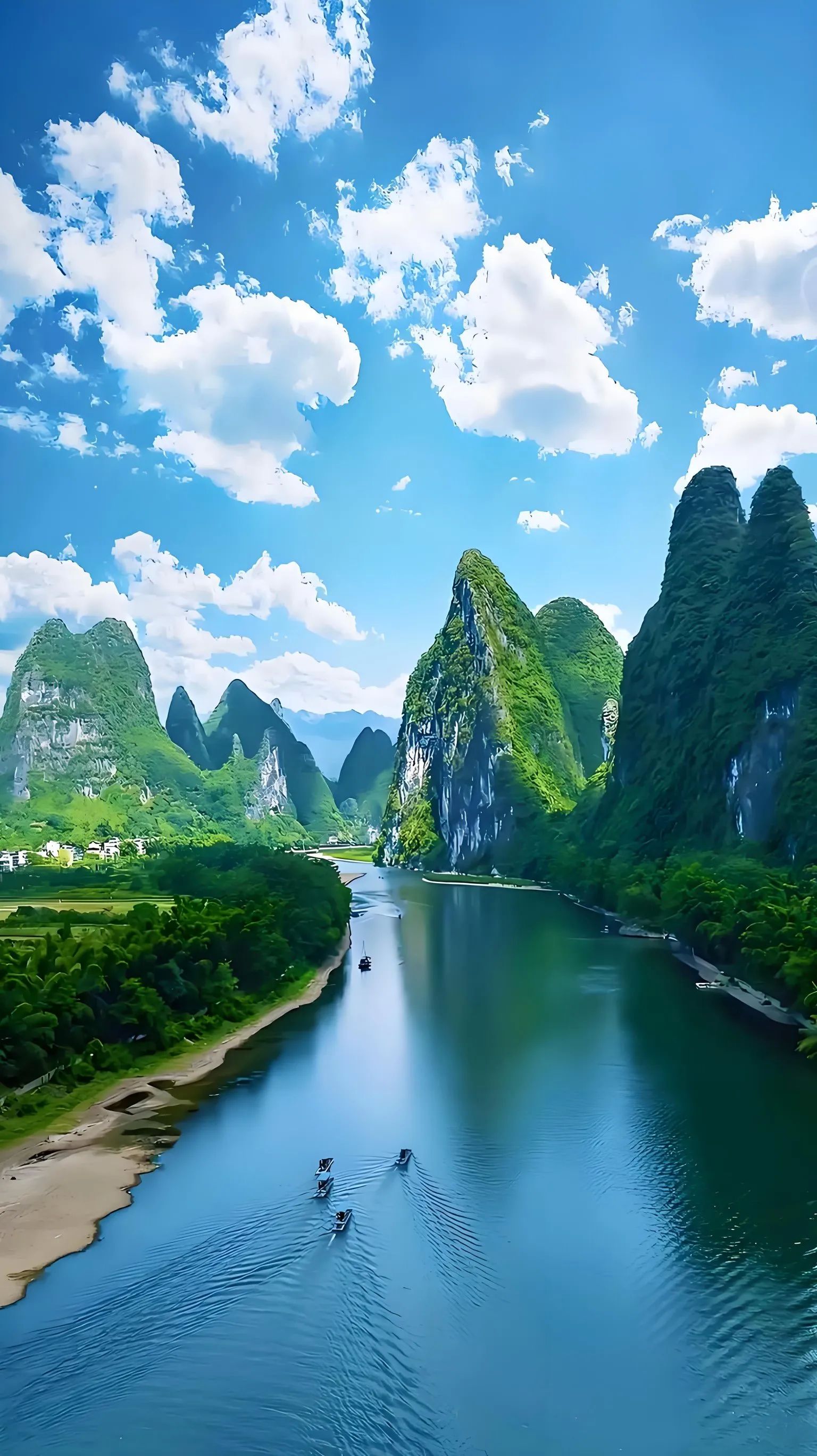 - 漓江:桂林山水的代表,乘船或竹筏游览精华段(如杨堤-九马画山-兴坪)最佳,能欣赏到20元人民币背面的同款风景。