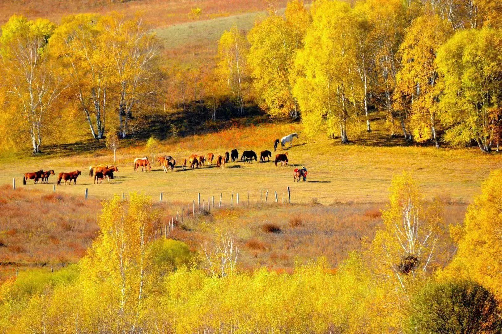 - 9.20-10.10:秋季的乌兰布统,树叶逐渐变色,草原呈现出五彩斑斓的景色,金黄的白桦林、火红的枫叶与绿色的草原相互交织 。