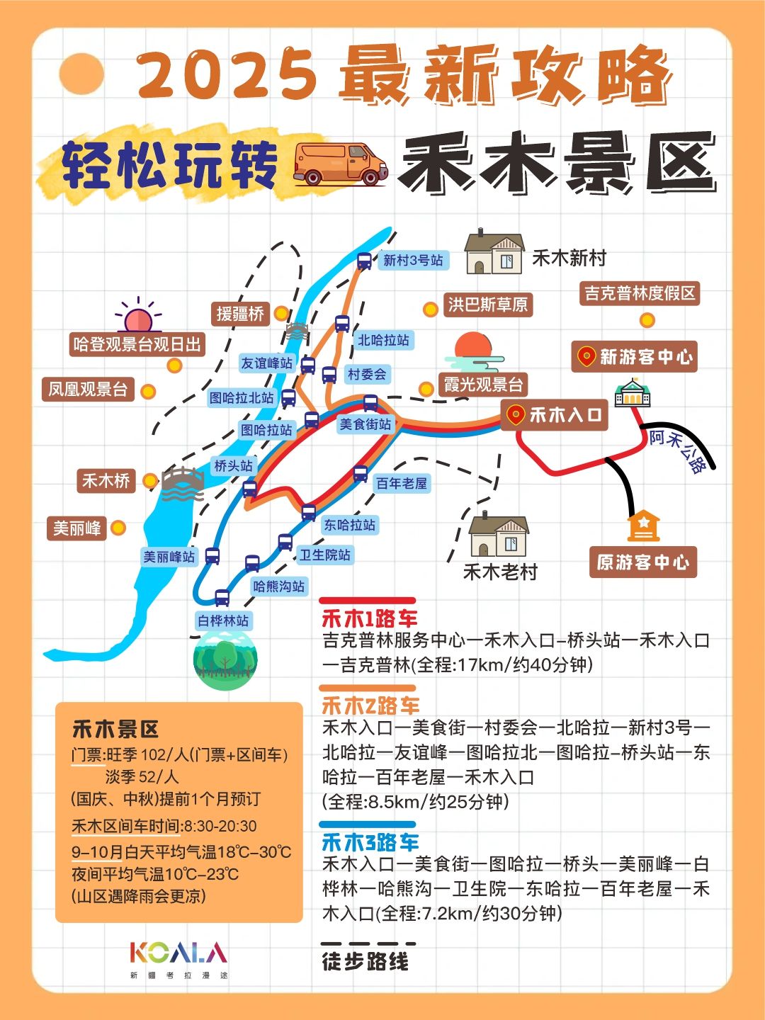 tips: 如果想看日出,就必须在景区里面住,可以选择老村, 因为区间车zui早8:00,是赶不上日出的 想在红巴斯草原看星空,可以住新村,选择不在景区内住宿,需要赶在20点之前到达换乘中心 .