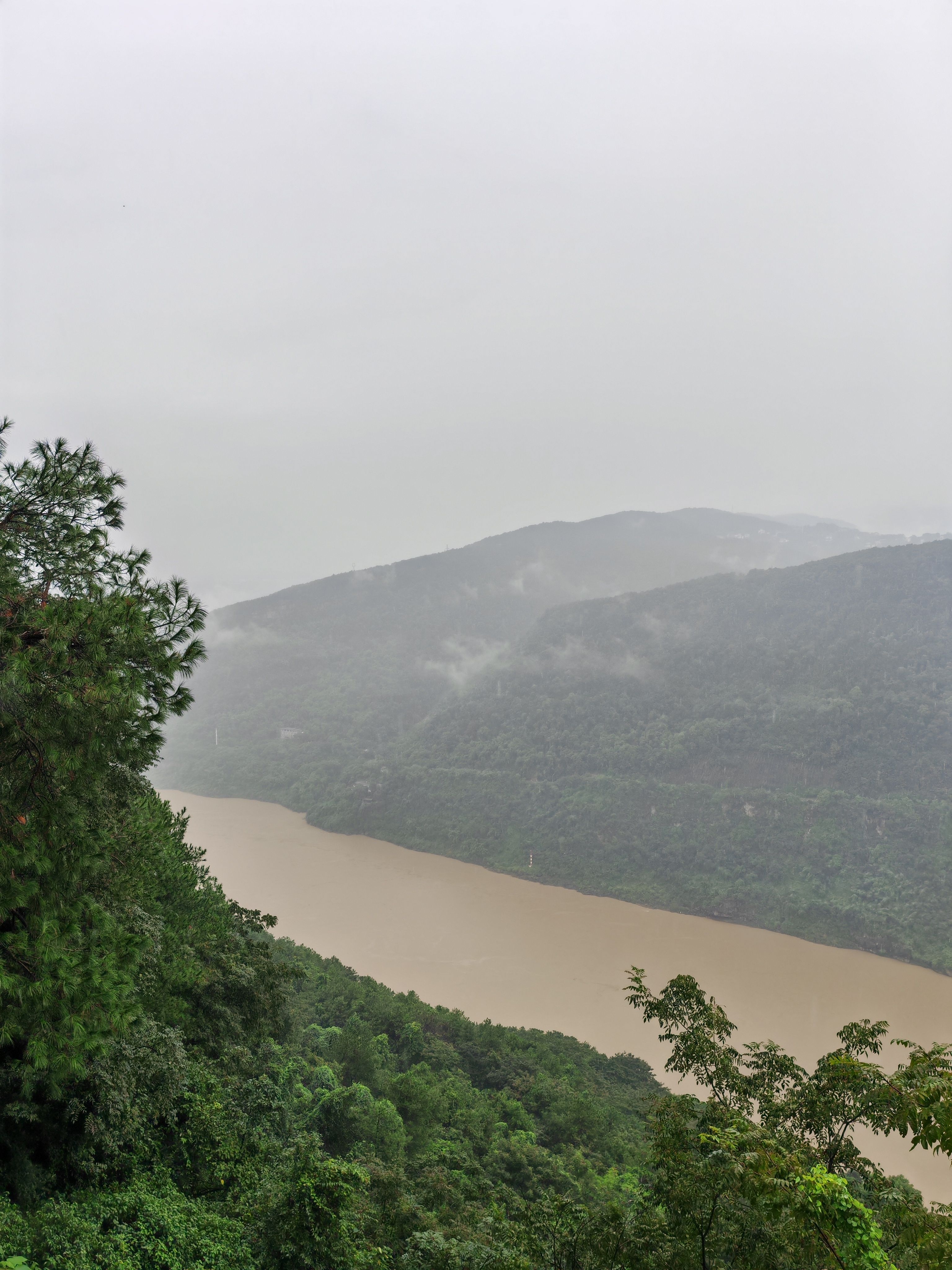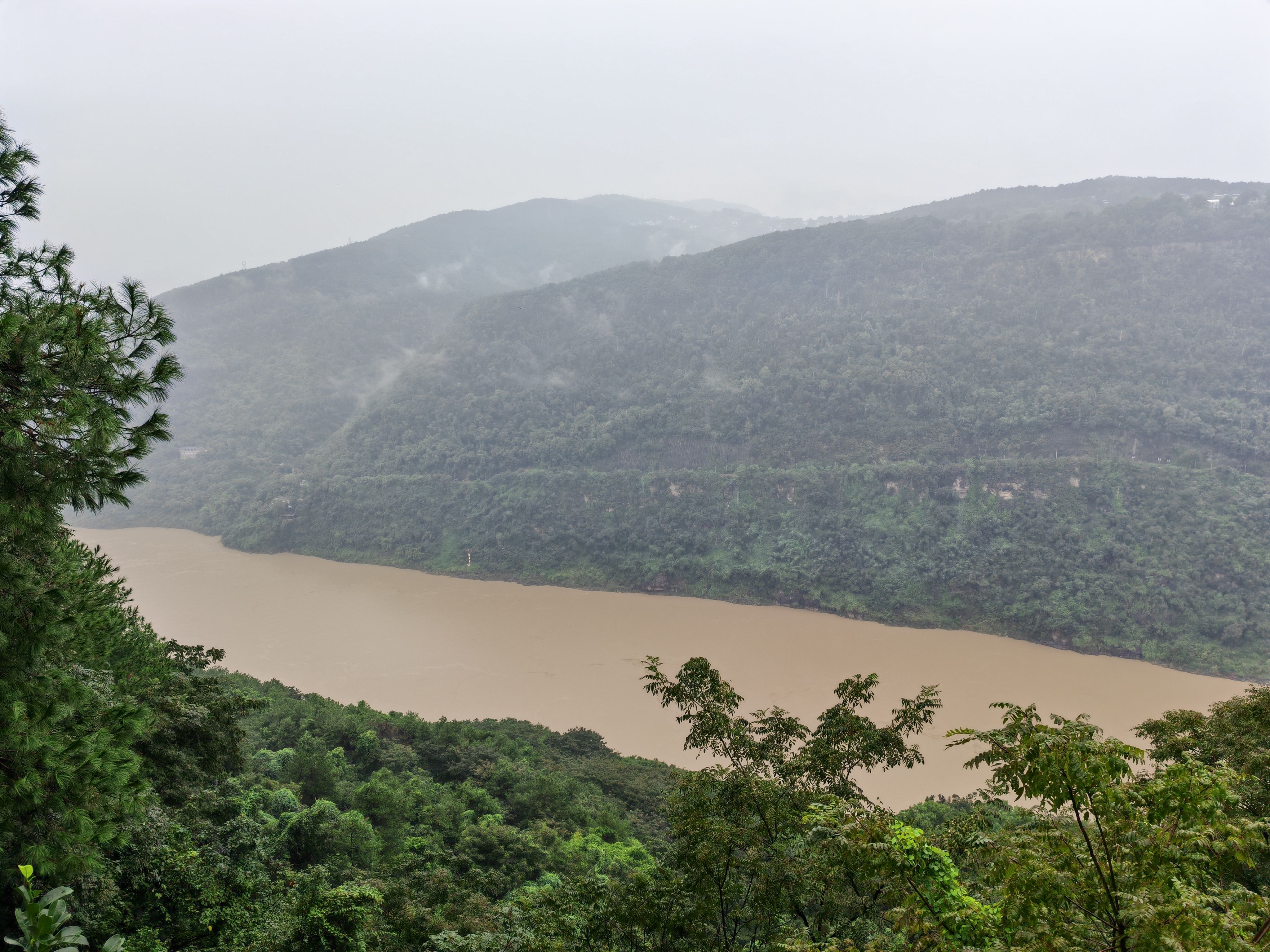 立于海拔470米的悬崖峭壁上,俯瞰烟雨云雾中的铜锣峡,长约3公里,江面狭窄、水流湍急,两岸悬崖夹江对峙,悬崖高立数百米,确是长江三峡中最为险峻的段落之一,为溯江而上进入重庆城区的水路门户,名副其实素有“东陲屏障”之称。