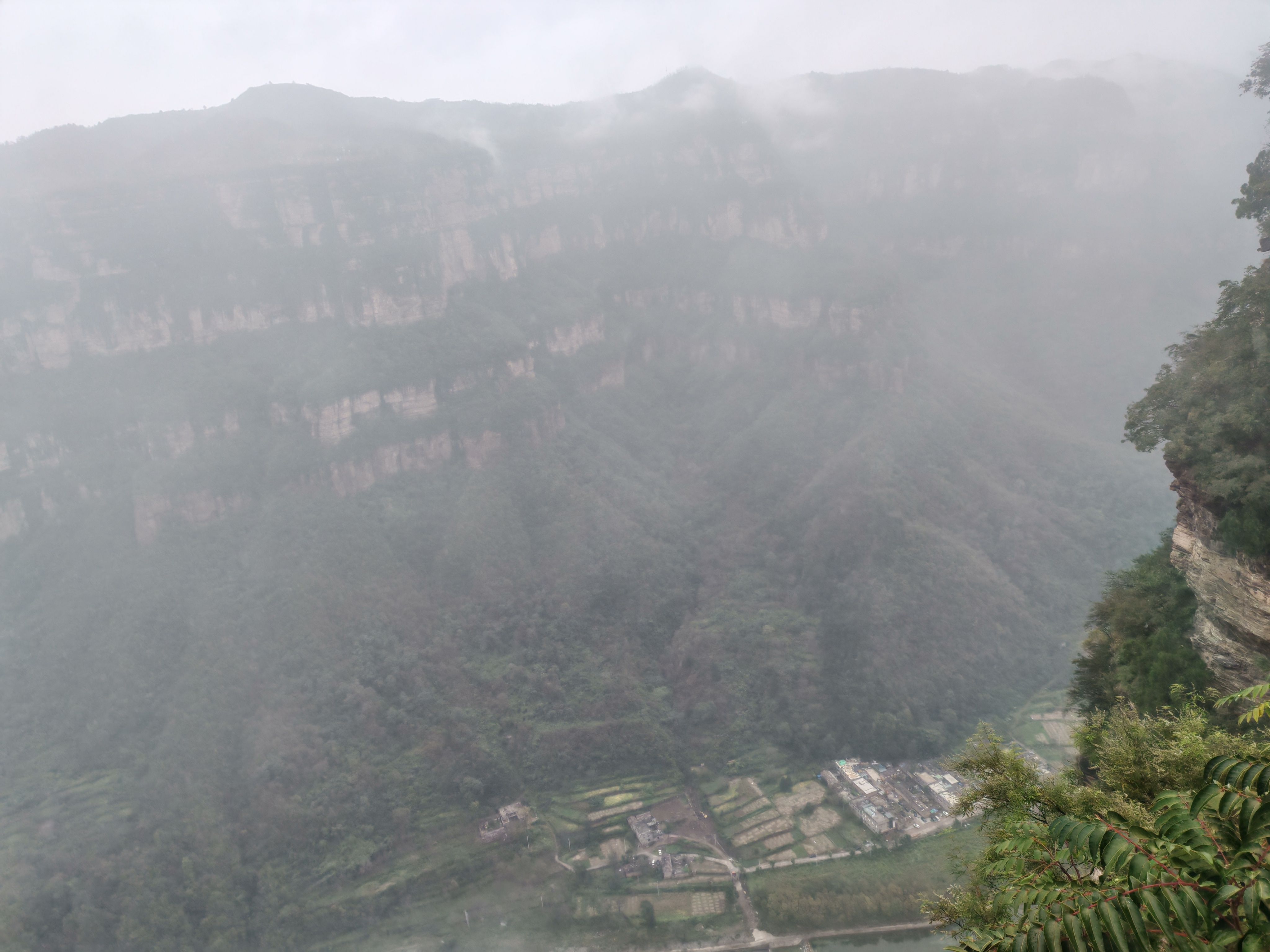 · 峡谷俯瞰:从数百米高空回望刚刚走过的桃花谷,蜿蜒的溪流如银色丝带