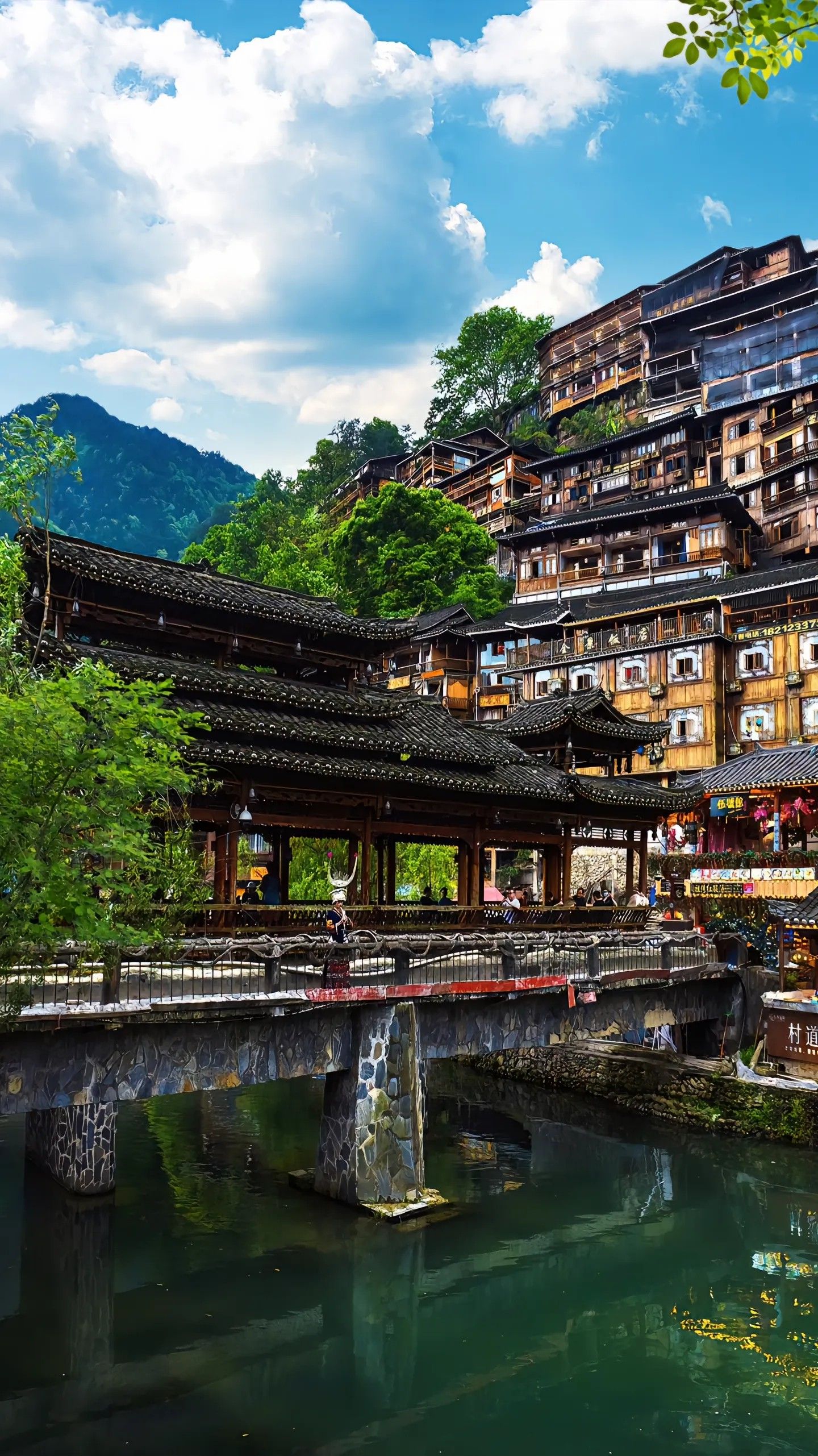 接下来是令人神往的**荔波小七孔景区**,这里被誉为中国最美的喀斯特地貌代表之一。小七孔以其清澈见底的湖泊、古老的吊桥、层叠的瀑布和广袤的原始森林闻名。整个景区环绕着静谧的天然氧吧,置身其中,仿佛浸润于一片绿色的海洋。小七孔不仅有自然风光的恬静与生机,亦为摄影爱好者提供了绝佳的创作舞台。特别是秋季,五彩斑斓的树叶与碧水交相辉映,构成了难以忘怀的美景。对喜欢徒步和探险的游客来说,小七孔是难得的心灵净土。