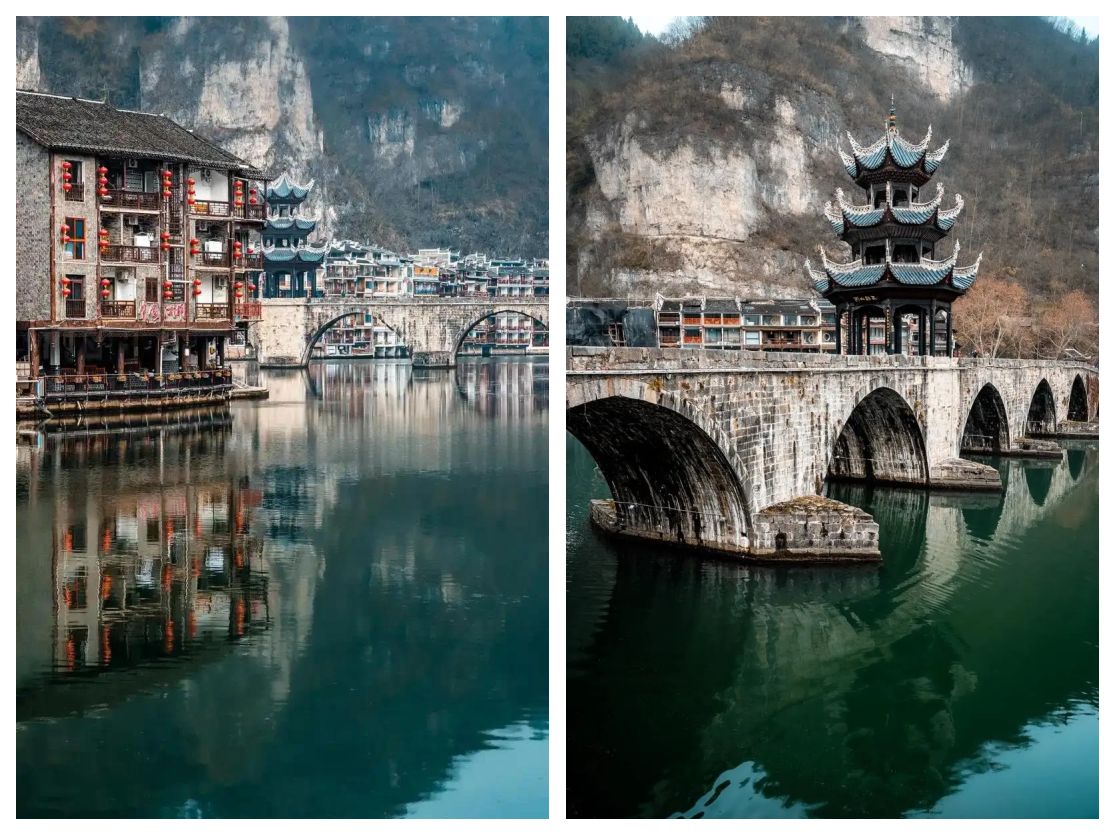 此外,**镇远古城**以其优美的山水环境和厚重的历史文化吸引着众多游客。古城依托依山傍水的地形,拥有保存完好的明清古建筑群以及古色古香的街巷。漫步在狭窄的石板路上,能感受到历史的悠远气息和小城独特的宁静韵味。镇远的夜景同样迷人,灯火辉煌映照着古桥、水面泛起涟漪,充满浪漫情调。此外,古城丰富的历史故事和文化遗产,如青龙洞、舞阳河等,增加了旅游的层次感和趣味性。