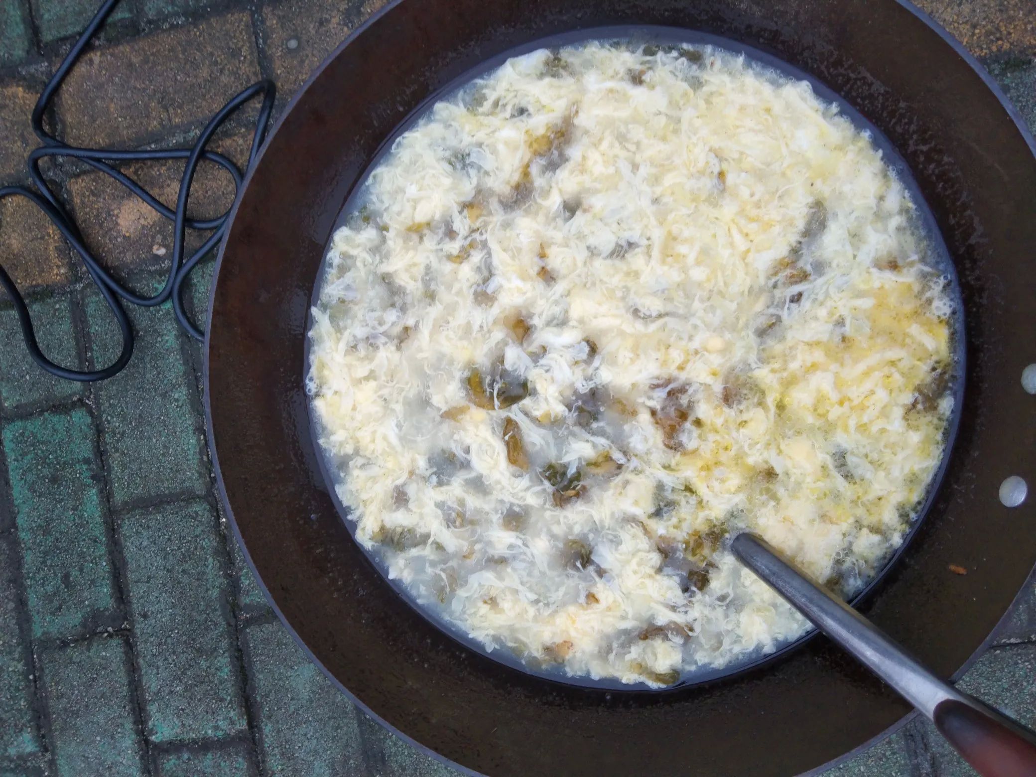 早上醒来,天居然没下雨,空旷的服务区里就我们三辆车共五个人,呼吸着雨后清新的空气,在停车场里跑了几圈,感觉着心旷神怡,十分舒服。在服务区边的桥墩上,还发现了地皮(也有叫地衣的,一种菌类),拾了一把,清洗后做了一锅地皮蛋花汤,美美的喝了一顿。吃完饭,洗完衣服,快十点了才恋恋不舍的离开服务区。