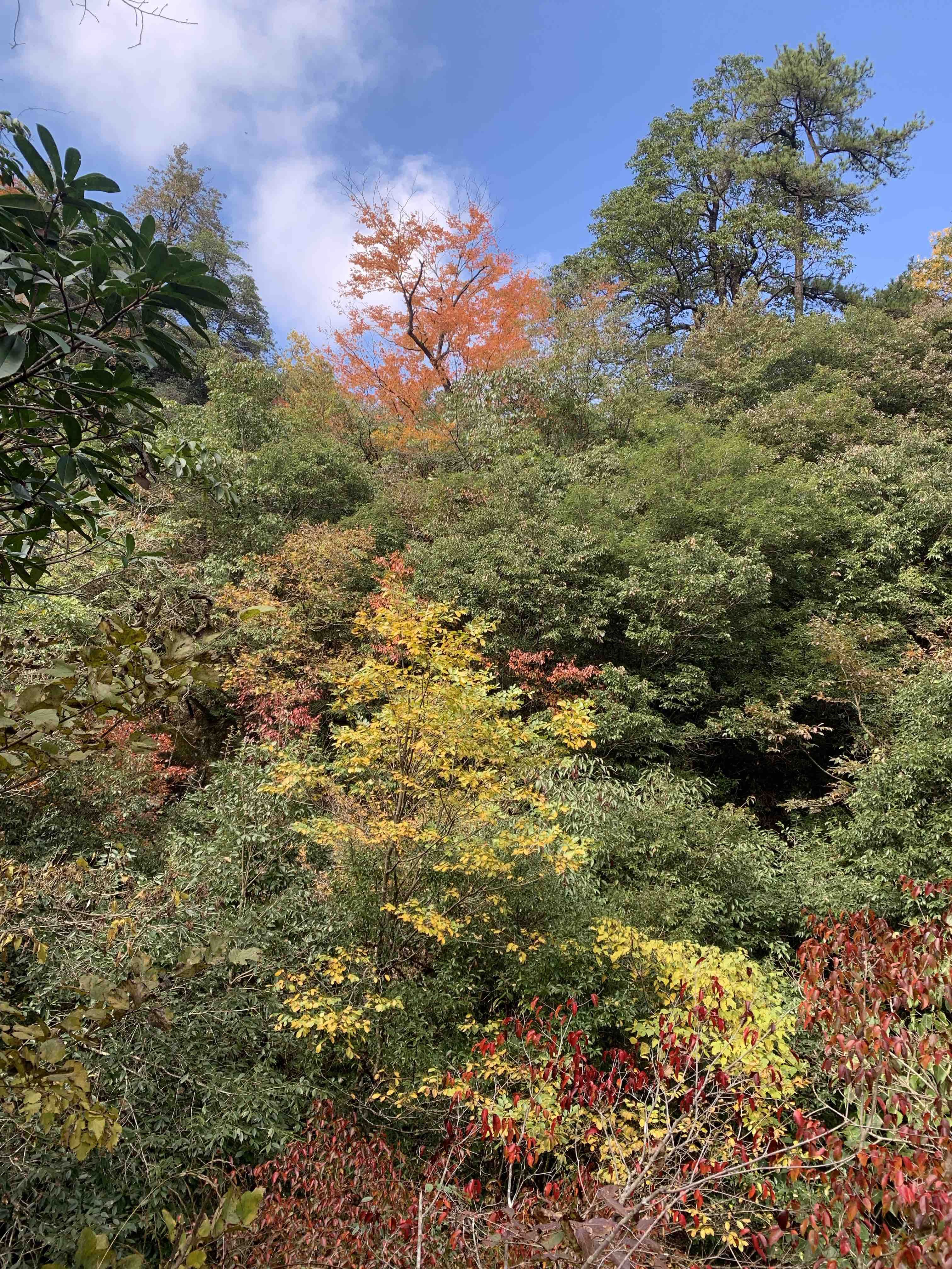 追随着溪流,欣赏着山间斑驳的树叶,时而露出几片蓝色的天空,时而筛下道道阳光。缓步上行,不知不觉间就到了百姓云梯,边走边找自己的姓氏,给爬坡增添了几分乐趣。