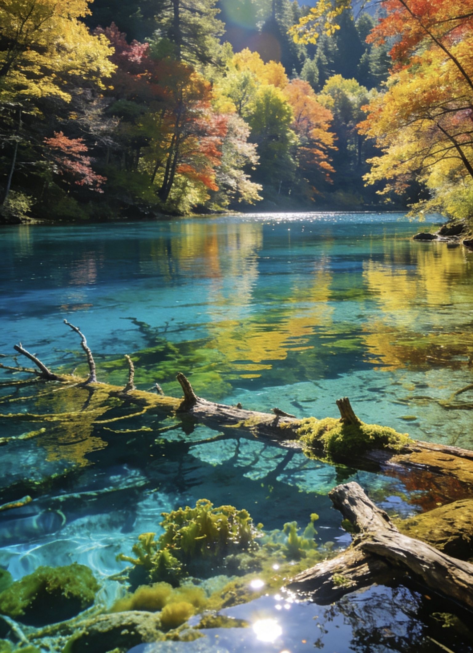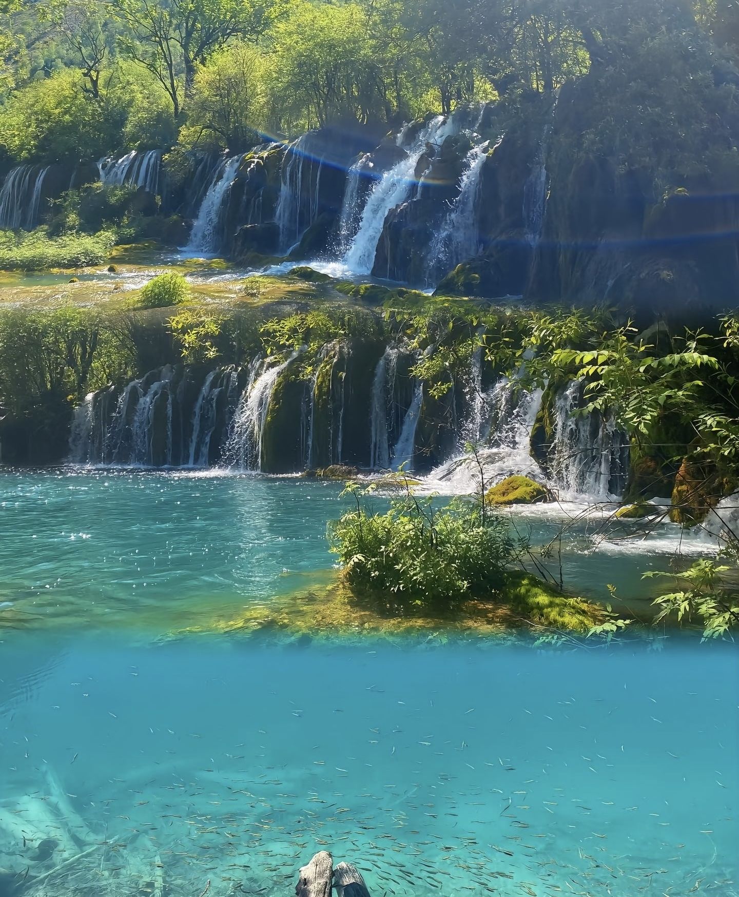 • 五花海隐藏视角:别再挤老虎嘴观景台!沿栈道往下走50米,有个小众观景台,能拍到“彩林+碧水+枯木”同框,水面像流动的蓝绿色宝石,阳光折射下还能看到水下钙华的纹路,原相机直出都像加了滤镜。