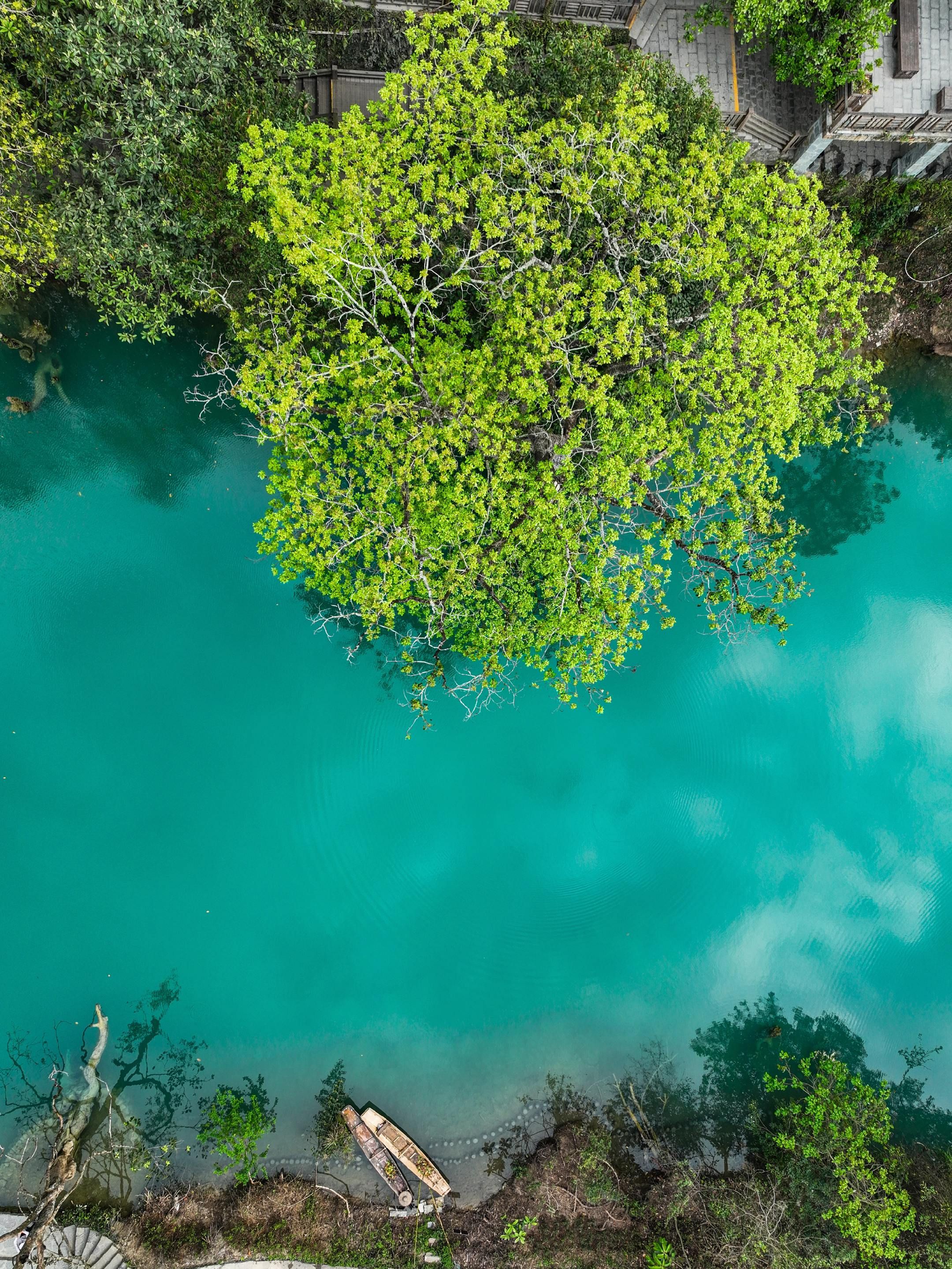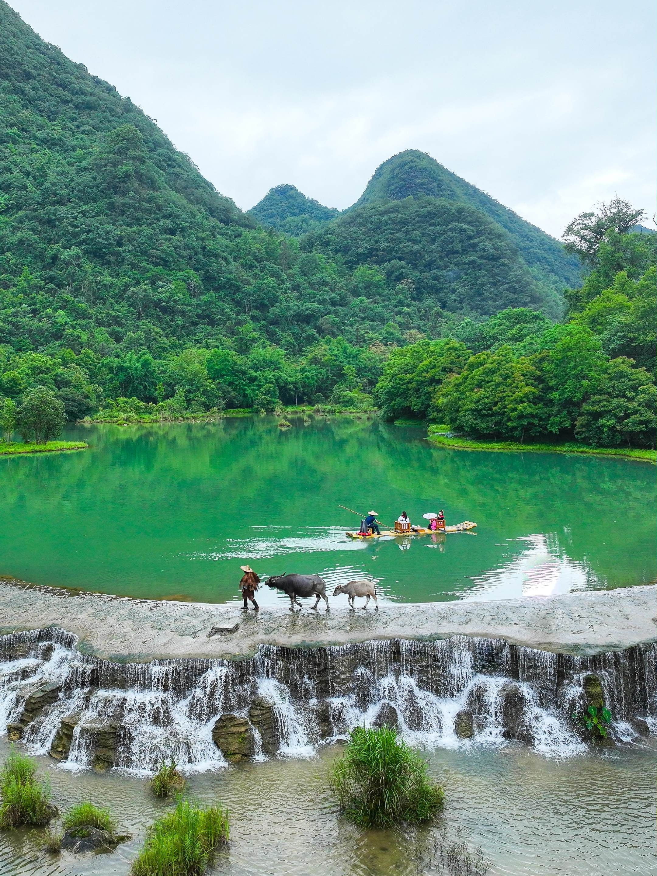 喀斯特天坑群超壮观!划小船穿越碧影潭,两岸竹林 + 古榕树美哭,还能炫布依族酸笋鱼~