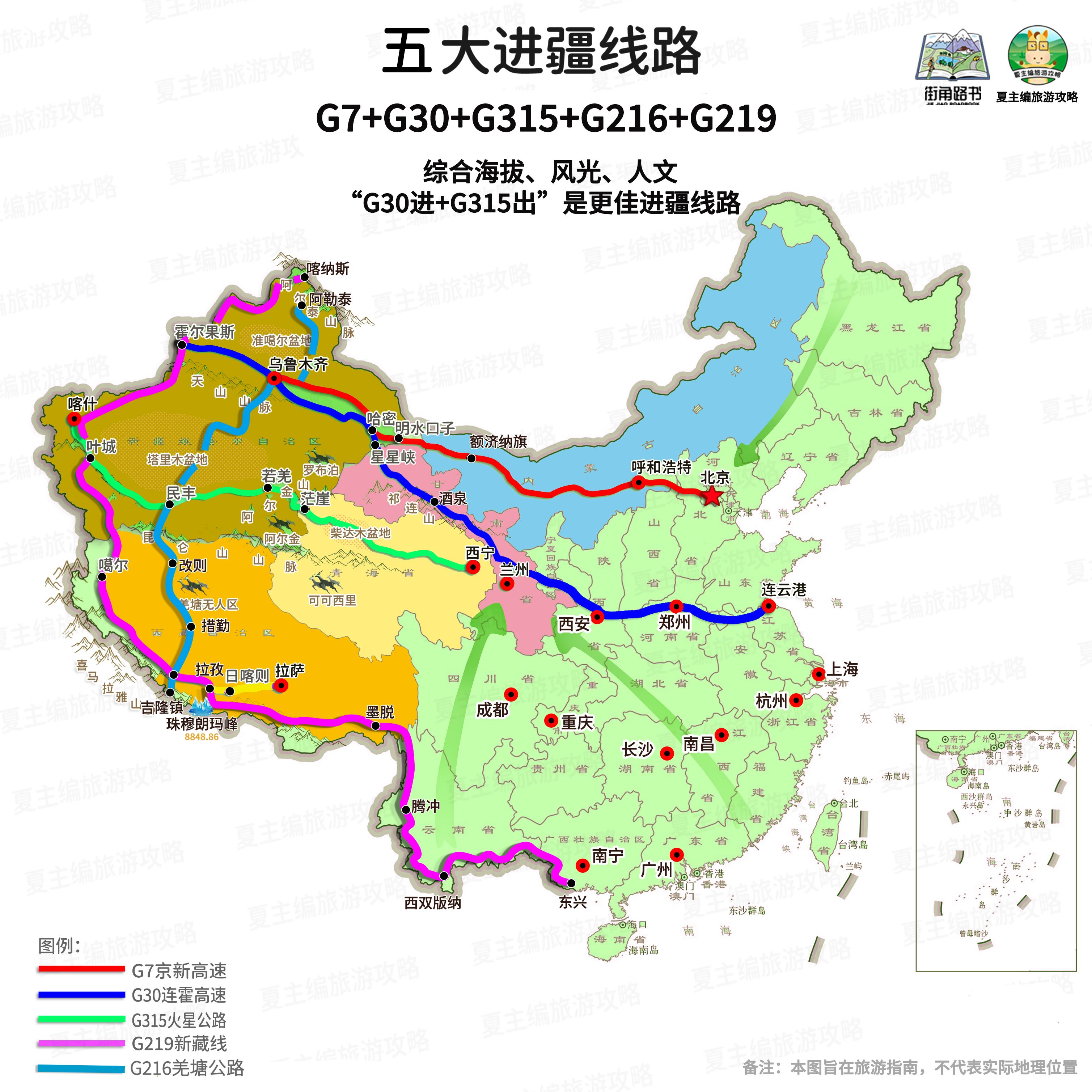 新疆外部,共有5大进疆线路,一般来说,从甘肃河西走廊沿G30连霍高速进入新疆,再从G315“中国66号”公路出疆,是最合理的线路规划。