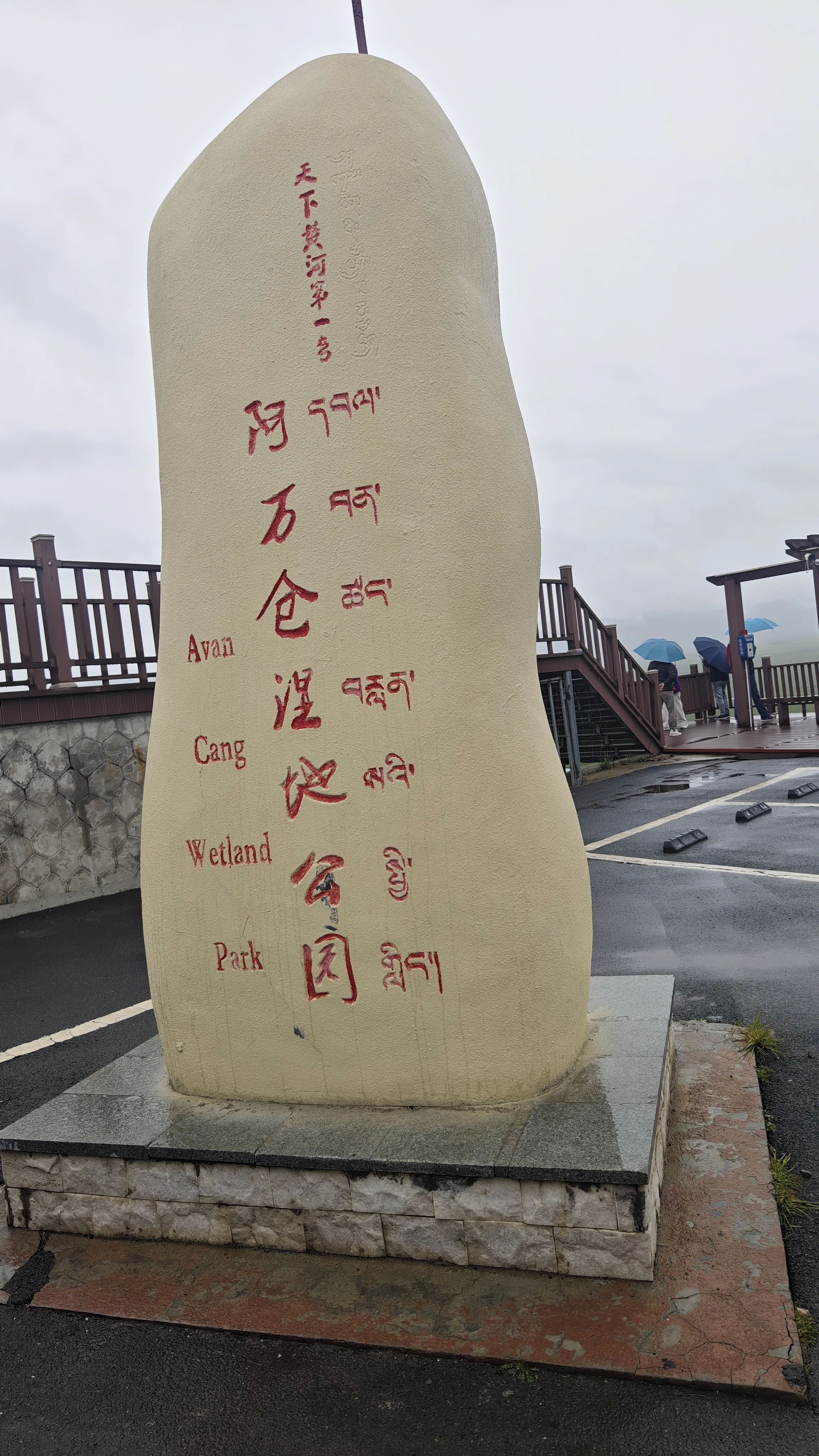 今天是我们来甘南旅游第十一天,早上七点多钟我们从甘肃县城玛曲出发,今天旅游的景点:天下黄河第一湾,万仓湿地公园,琅玛诗,格尔登诗四个景点。八点多钟我们来到了天下黄河第一湾,天公不作美,天下着小雨,天气又冷,我们只好下车打卡,眼睛环四周一圈。就算来到了这个景点。然后我们来到万仓湿地公园,万仓湿地公园是我国最美的四大草原之一 虽然天也下着小雨,但是公园的美景把大家吸引住了。我们沿着木板铺的小路走到草原最高的观景台。望见草原无边无际,碧绿的草原中一条条银色的带子在草原中穿梭,那是草原中的溪 水。弯曲从横,原始古朴,静谧和谐,除了自然还是自然,没有城市的喧闹 ,现代化的污染 ,成群的牛羊在草地上悠闲的吃草 ,美丽极了。真是一幅巨大的草原水墨画!
