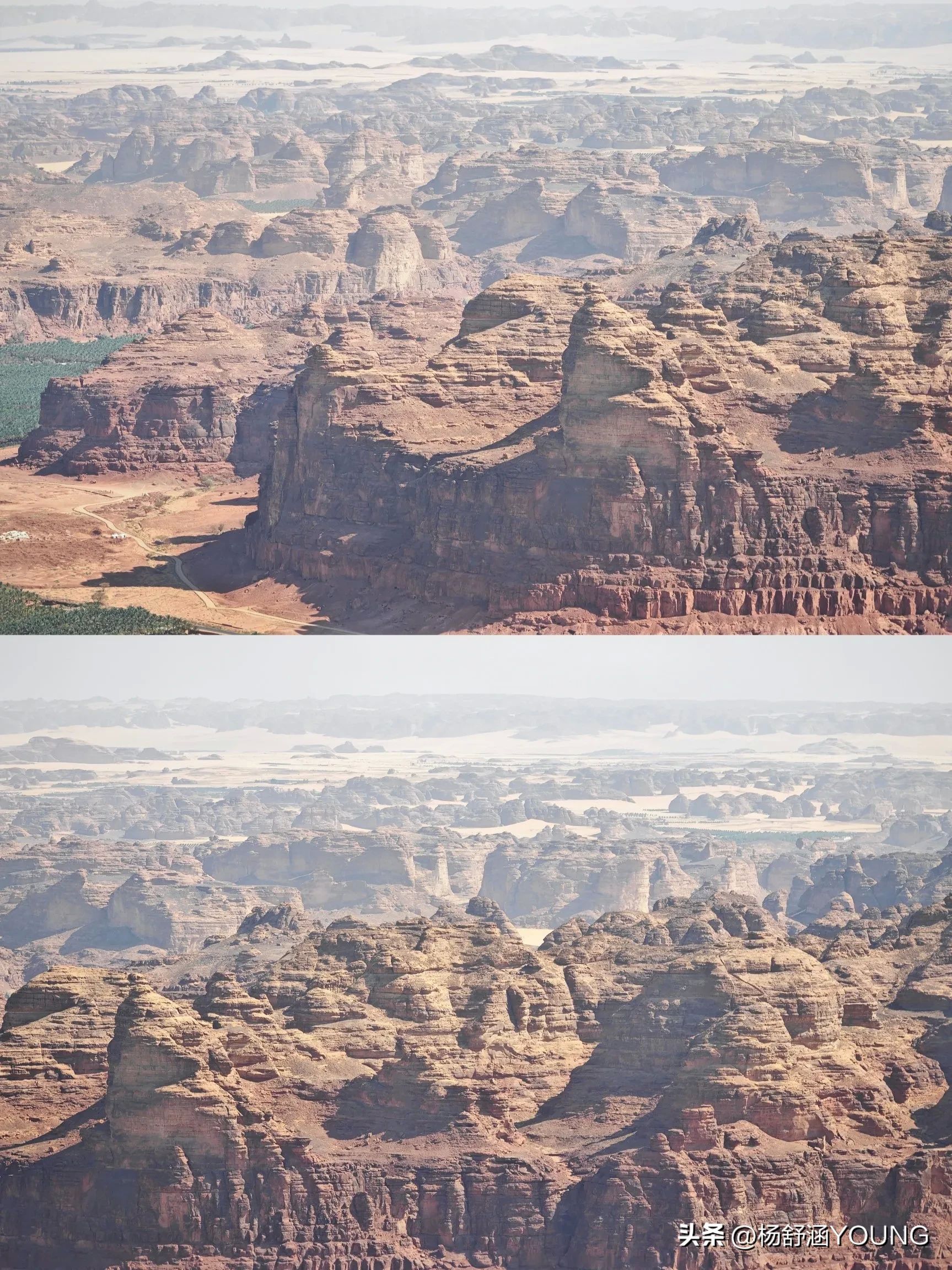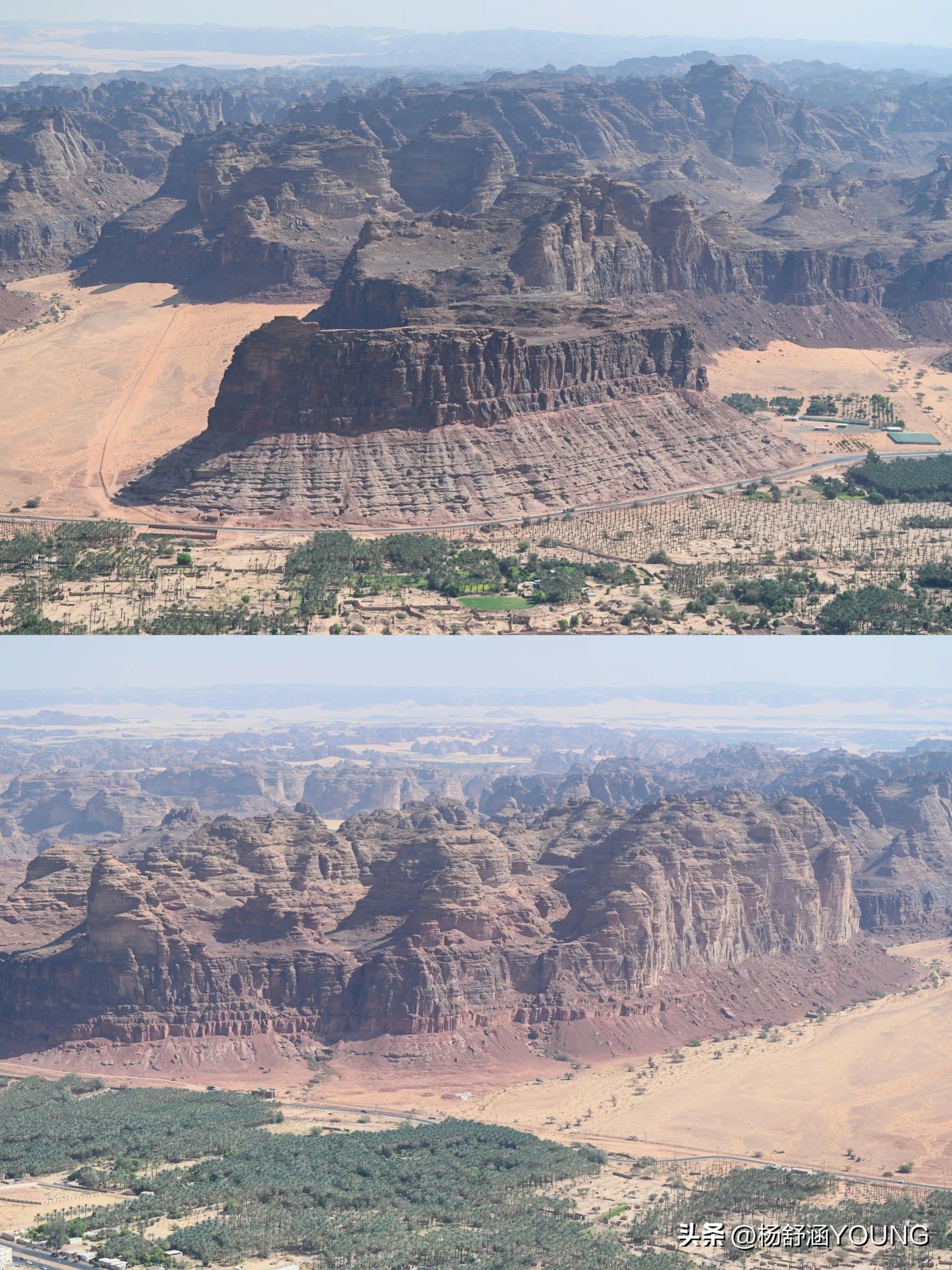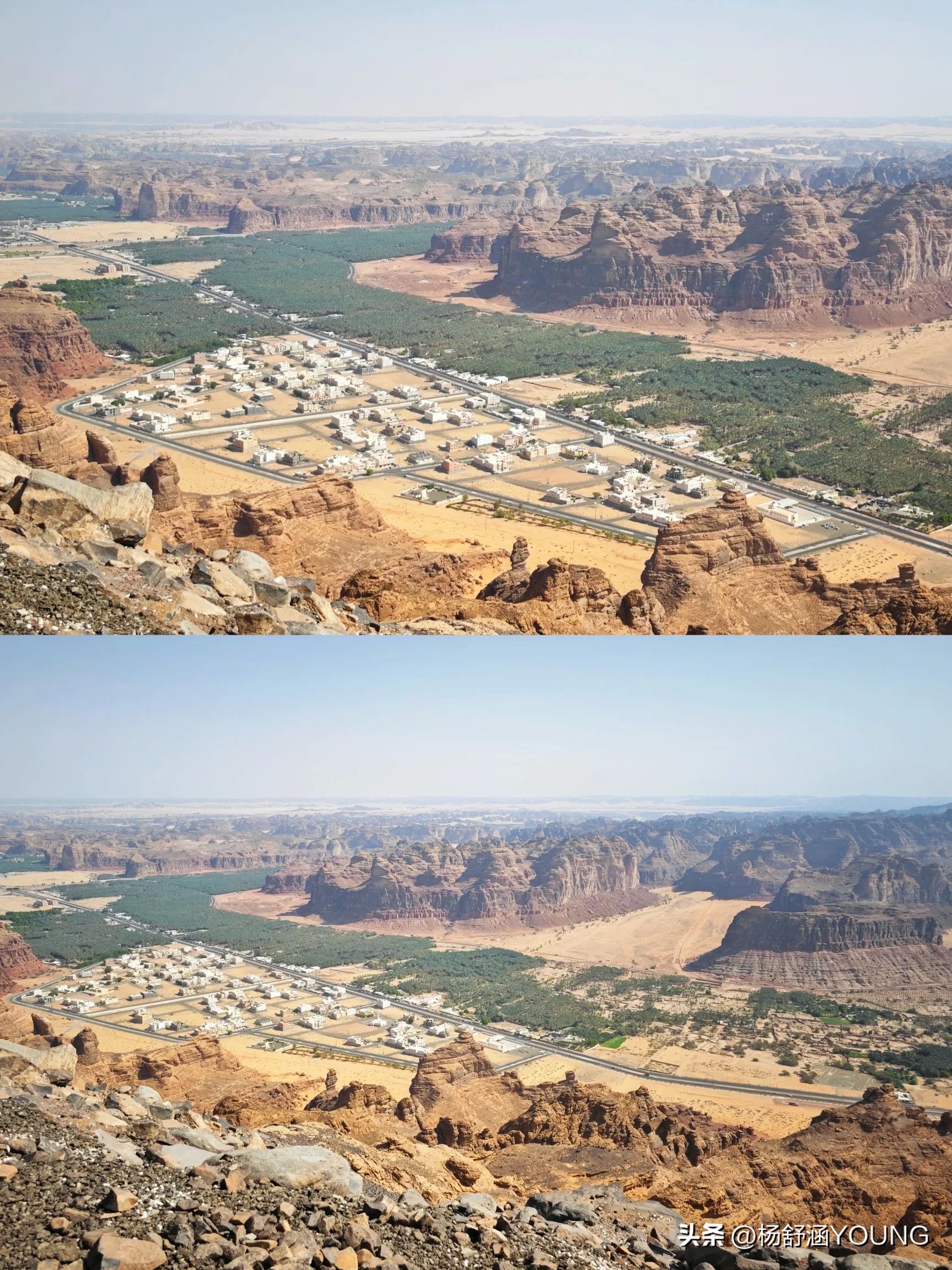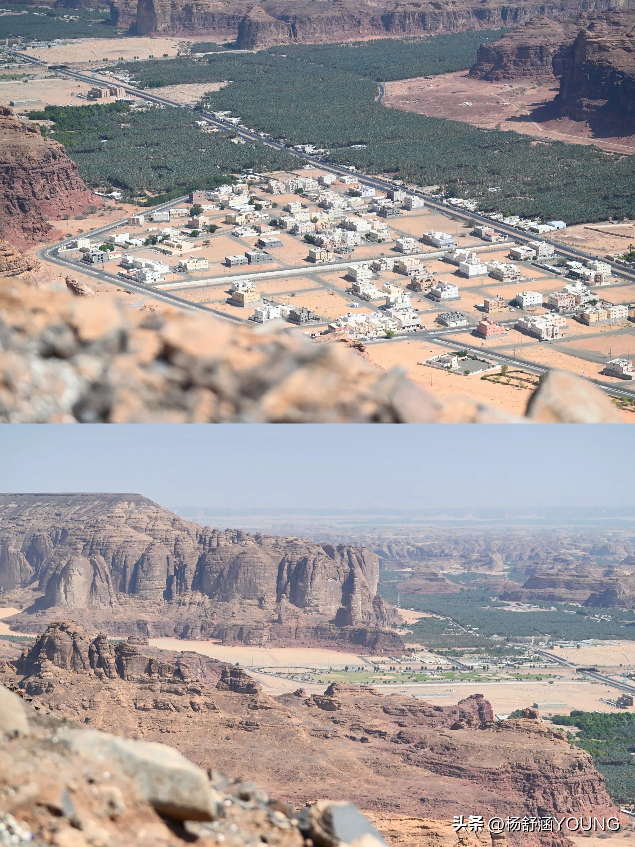 主观景台(海拔817米) 。西北方向:Harrat Khaybar火山链(沙特最长熔岩流,绵延180公里) 。东南方向:阿艾尔奥拉绿洲棕榈矩阵(使用望远镜可辨古城遗址轮廓) 。不同颜色的岩层对应不同的喷发时期(深黑色=1万年内,赭红色=80万年前)