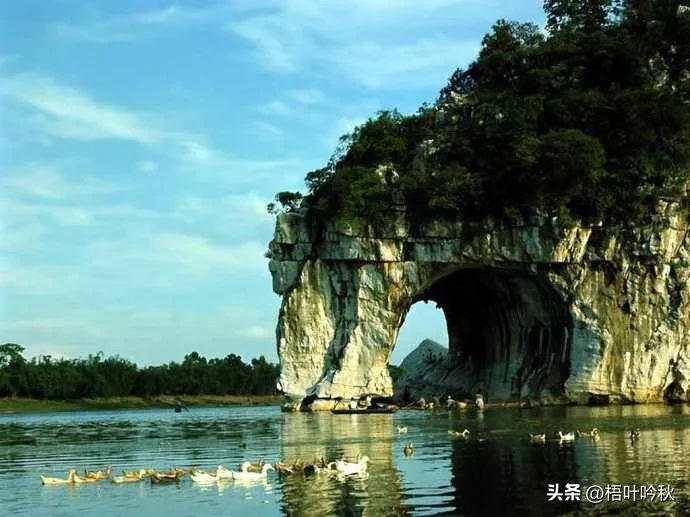 - 象鼻山 :位于桂林桃花江与漓江的交汇处,是桂林的城徽标志,景区主要景点有象鼻山、水月洞、象眼岩、普贤塔等,著名的象山水月洞含唐宋文化历史石刻22件,是唯一一个含唐宋时石刻文字最多的水洞。