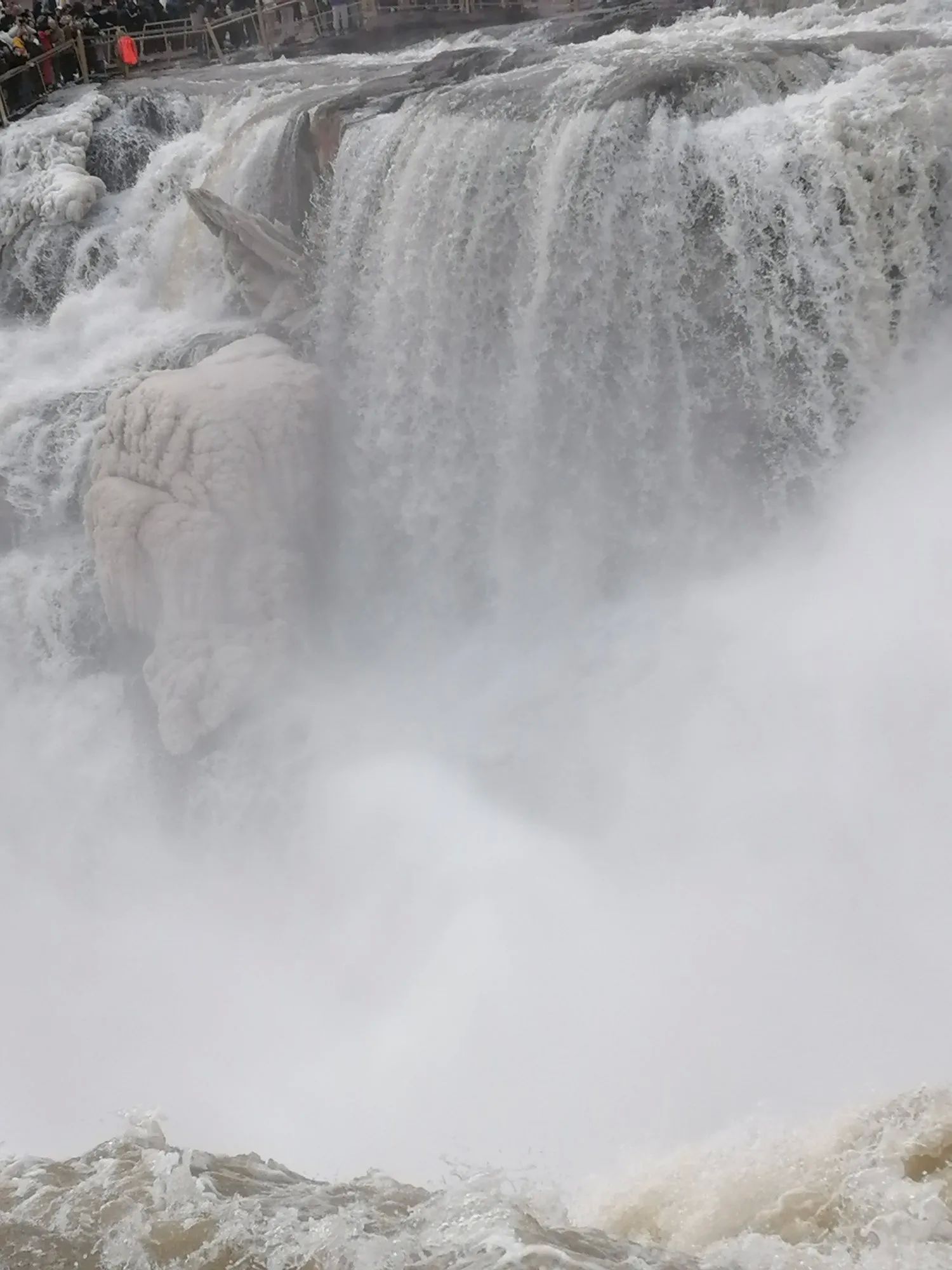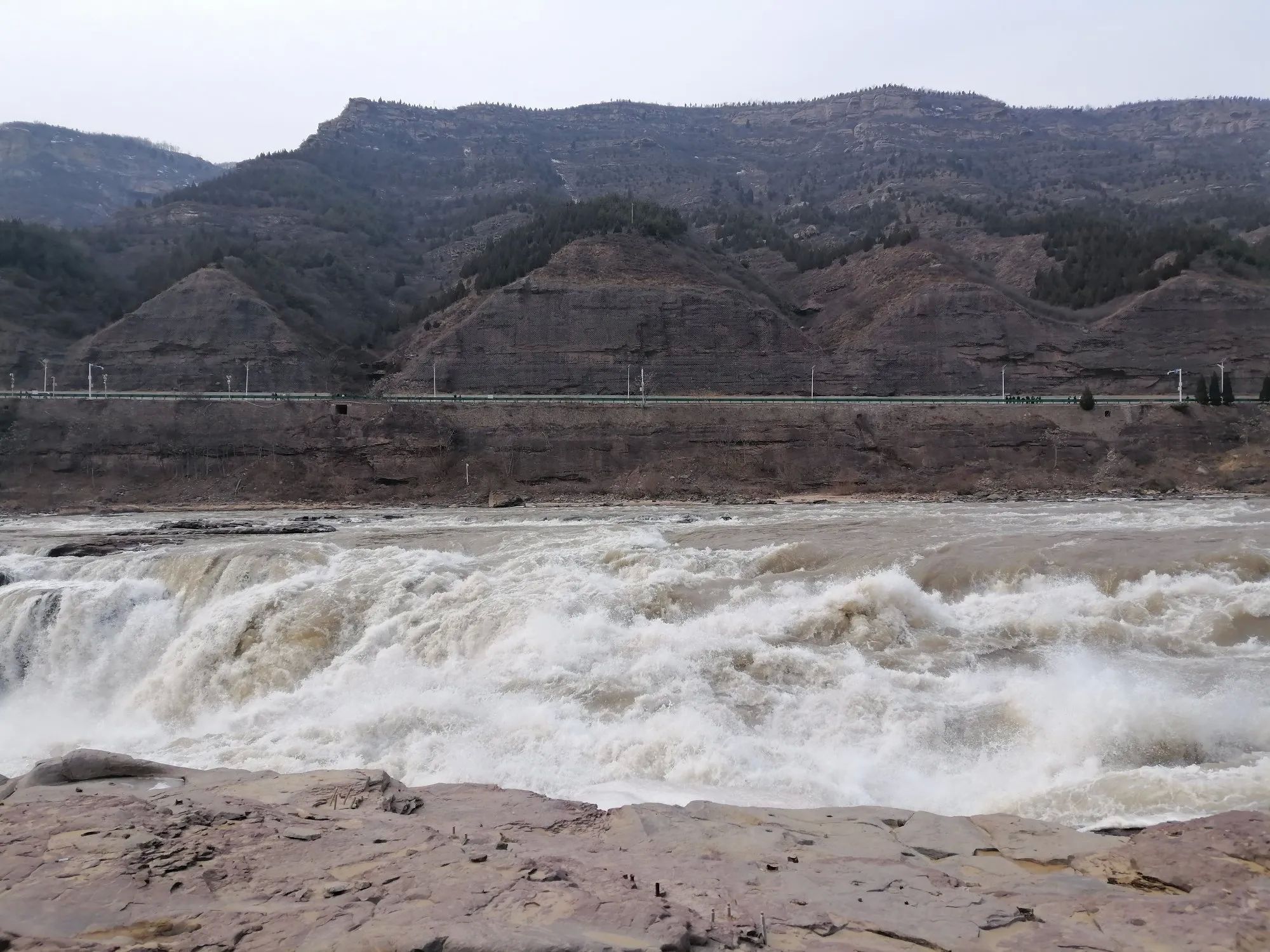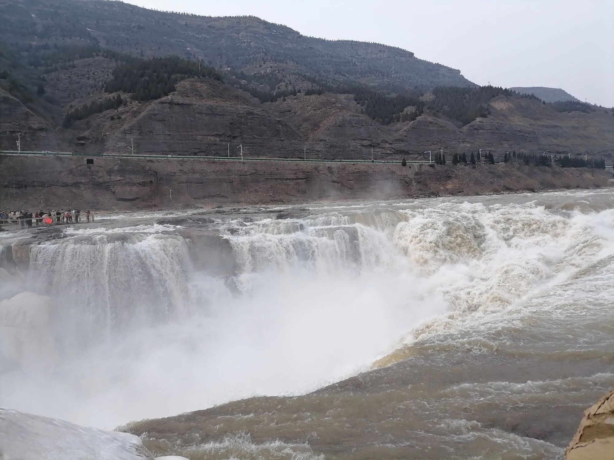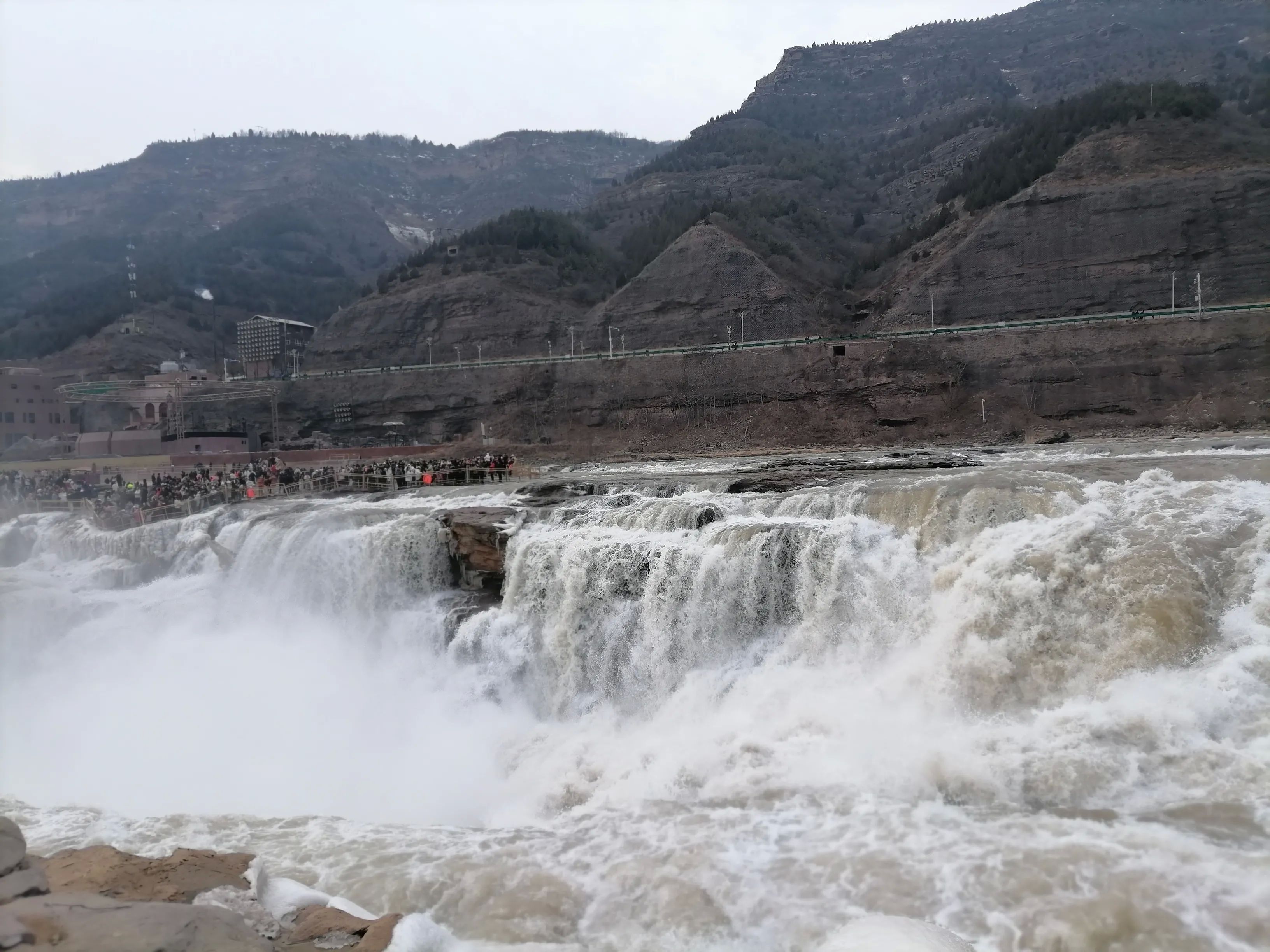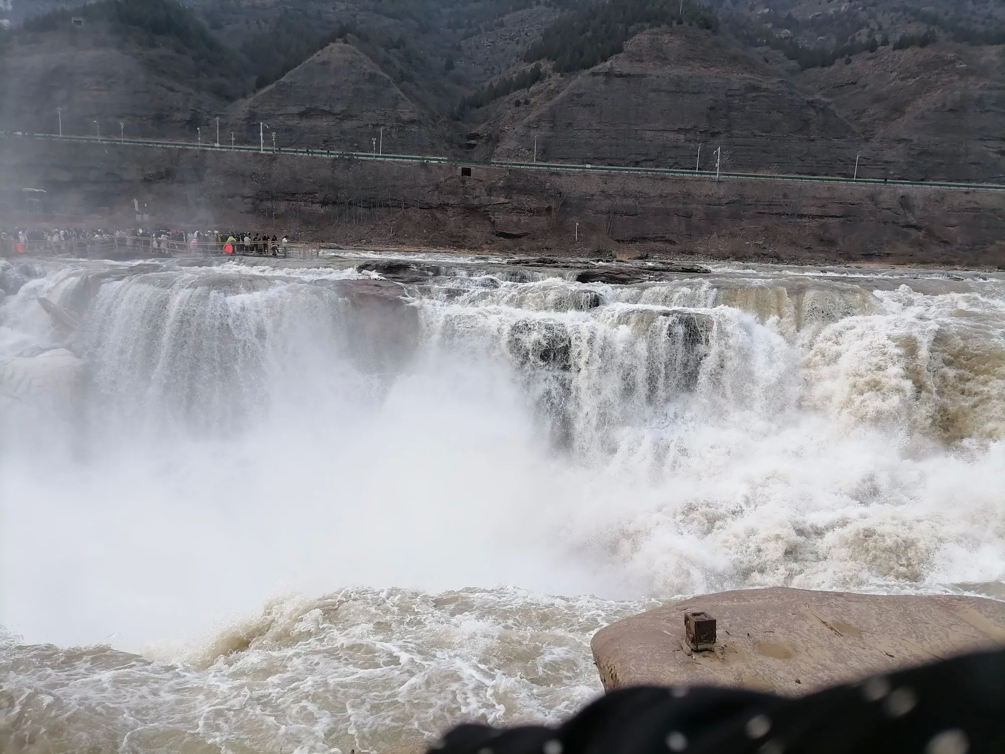 虽然现在是枯水期,但黄河在壶口段依旧气势如虹。分析原因有三个:一是河道变窄(故取名壶口);二是落差变大;三是黄河底部和两侧都是巨石。这些巨石遇到河道变窄、落差变大的黄河水瞬间激起千层雪,非常壮观且震撼,感觉确实是不虚此行(提醒一下:黄河是山西、陕西的界河,感觉还是在山西这边观看效果好)。