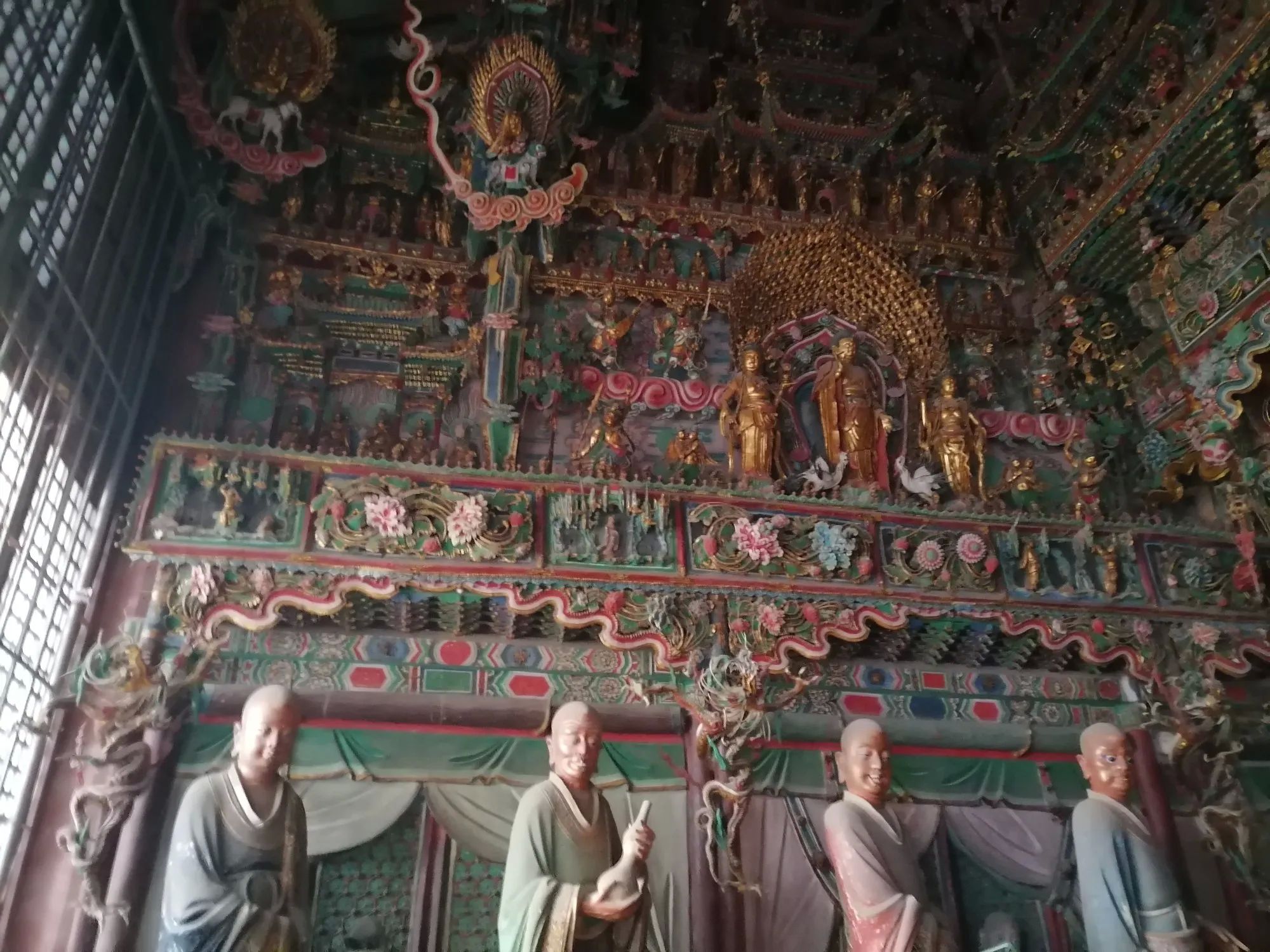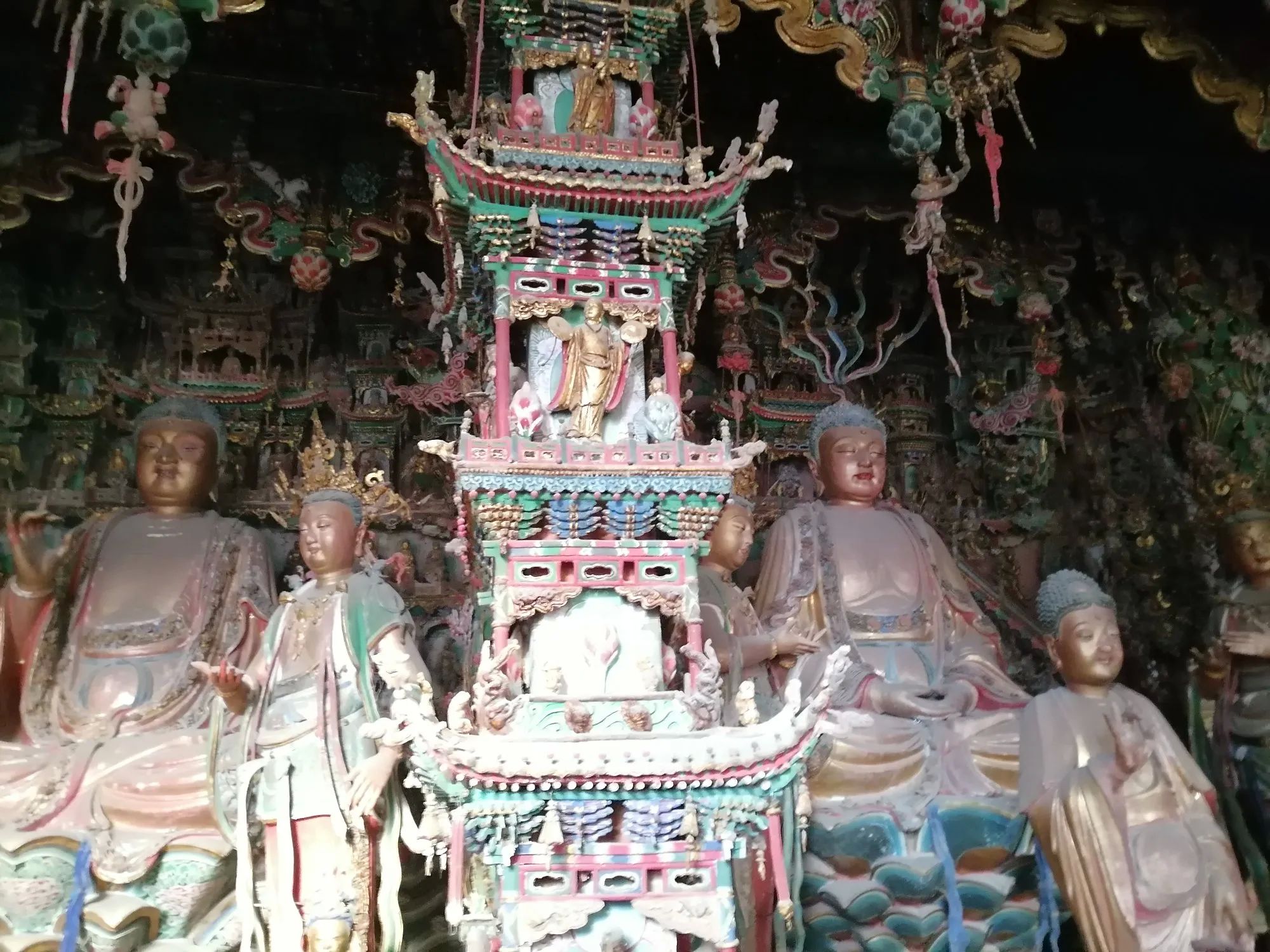 小西天又名千佛庙。它确实不大,但主殿“大雄宝殿”的悬塑空前绝后、无与伦比。这个大殿有1978个彩塑,所以是名副其实的千佛庙。据说这些佛像都是铜铸且表面贴金的。数量之多、色彩之艳丽、悬塑技术之高超,是其他庙宇无法比拟的,可以说蔚为壮观,值得一看(小西天接待能力有限,门票需要提前预约)。