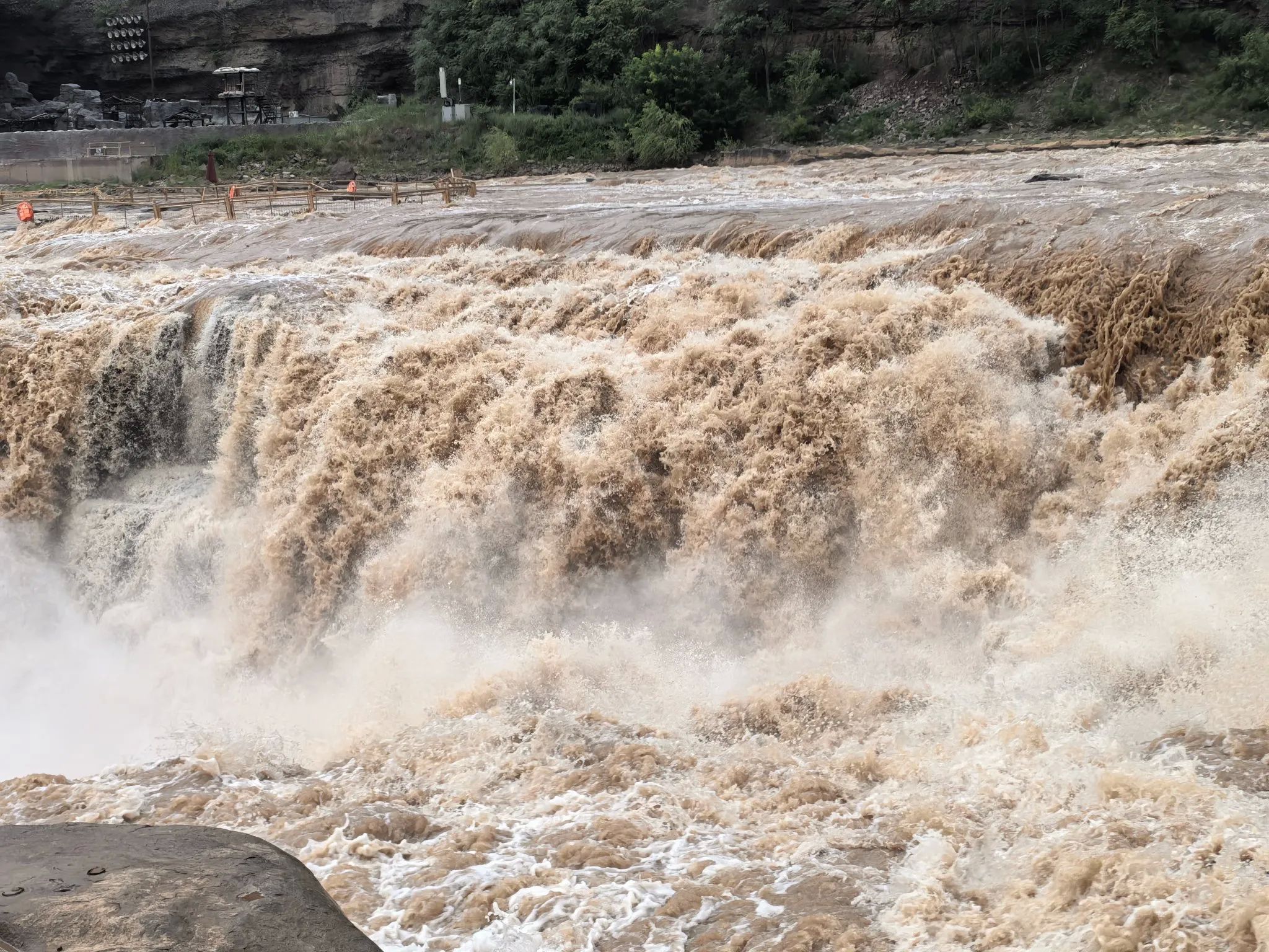 返回高速,车上吃零食,向前进。经大宁,到吉县,乘摆渡车进入主景区。未见水流,先闻涛声,如雷轰鸣。踏上石滩,母亲黄河已将我揽入臂弯。“黄河之水天上来,奔流到海不复回。”河水在此处拐弯收窄,水流湍急,声若雷鸣 。随着人流向前,黄色瀑布渐入眼前,那声音起初隐约,如远处闷雷,愈行愈近,愈发震耳欲聋,水如沸,雾如腾。见过江南的瀑布,纤细如线,温婉如女子;西南的瀑布,雄浑壮阔,声震山谷 。而眼前这黄河之水,竟不似别处瀑布那般垂直跌落,而是从宽阔的河床突然收缩,挤入一道狭窄的石槽中,水流相互推挤、激荡,形成一片沸腾的浊浪,然后猛然跌入十余米深的壶形峡谷中 。那气势,仿佛千军万马冲锋陷阵,又似无数黄龙翻滚搏斗 。黄河水浑浊,挟带着上游的黄土,呈现出一种独特的赭黄色 。水流在石槽中左冲右突,激起数米高的浪花,泛出金红色的光芒 。我凝视着这奔腾不息的水流,忽然想起家乡河流的平静,想起湖泊的浩渺,那些水是温顺的,是养育人的;而眼前这黄河之水,却是暴烈的,是磨炼人的意志的。 抗日战争时期,革命诗人光未然与音乐家冼星海,正是受黄河壮丽景象的激励,在壶口瀑布旁创作出鼓舞军民斗志的《黄河大合唱》。“风在吼,马在叫,黄河在咆哮,黄河在咆哮,河西山冈万丈高,河东河北高粱熟了,万山丛中,抗日英雄真不少,青纱帐里,游击健儿逞英豪……”激昂的旋律,仿佛还在黄河上空回荡,诉说着中华民族的坚韧与不屈。