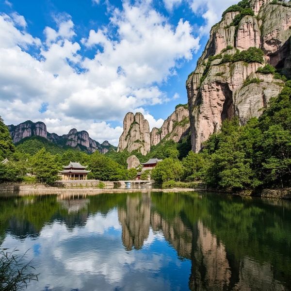 • 简介:仙水岩是龙虎山的核心景区之一,以其独特的丹霞地貌和清澈的河水而闻名。这里不仅山水相依,景色宜人,还是龙虎山道教文化的重要发源地。