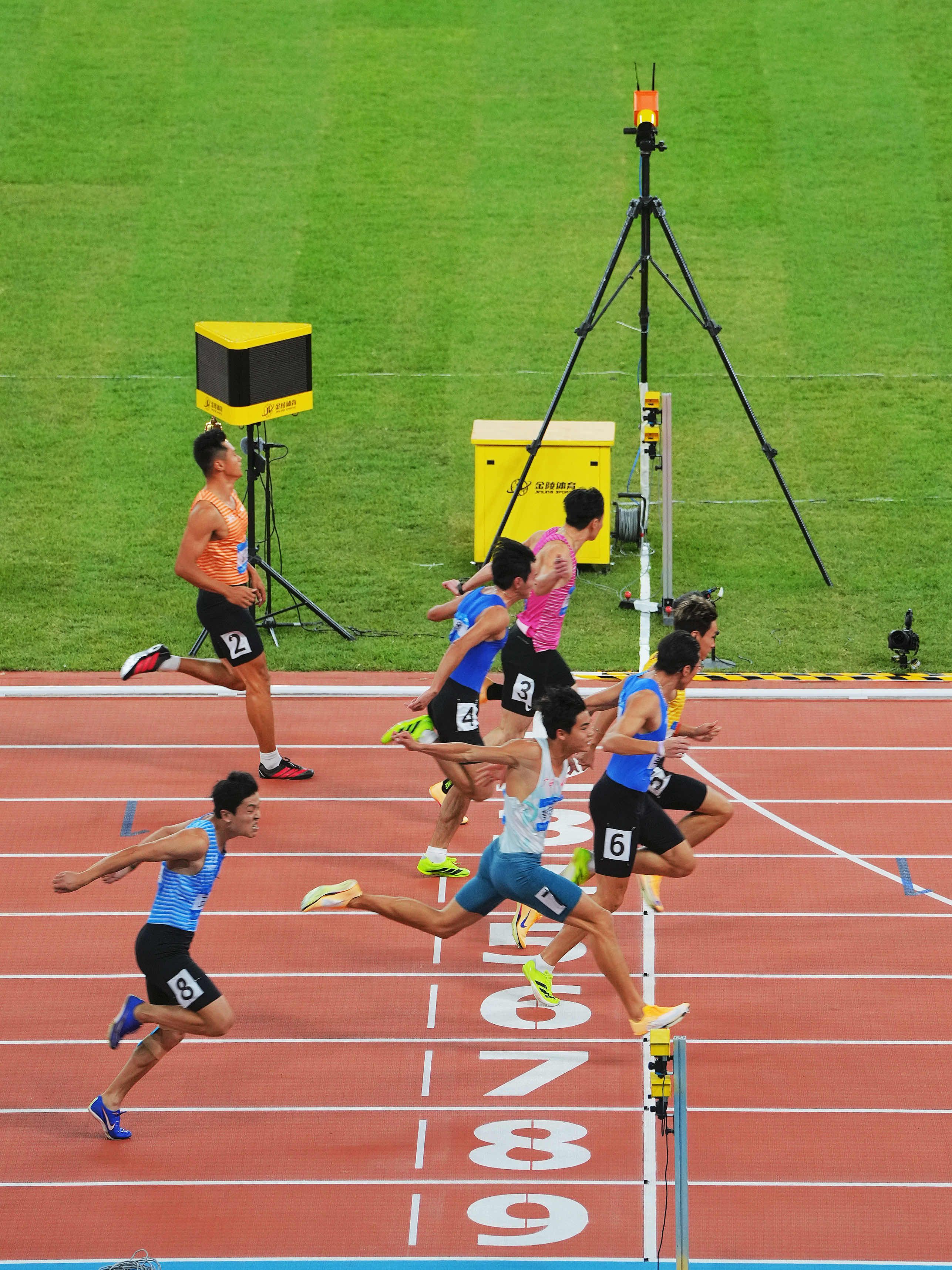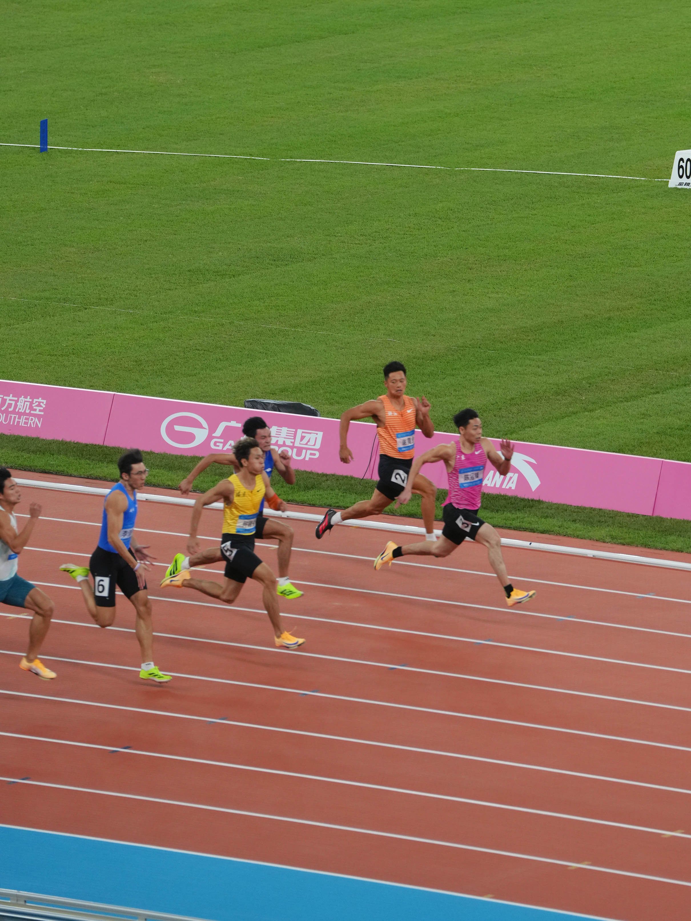 关于座位:买了区间票都是无座的,位置先到先得,至于跨区域,听说晚上查得严,所以基本还是在自己的区域找位置坐。终点线在FG区,20号4x100米接力苏炳添大概率是代表广东跑第一棒,HJKLMN那个弯道应该观看角度最佳。