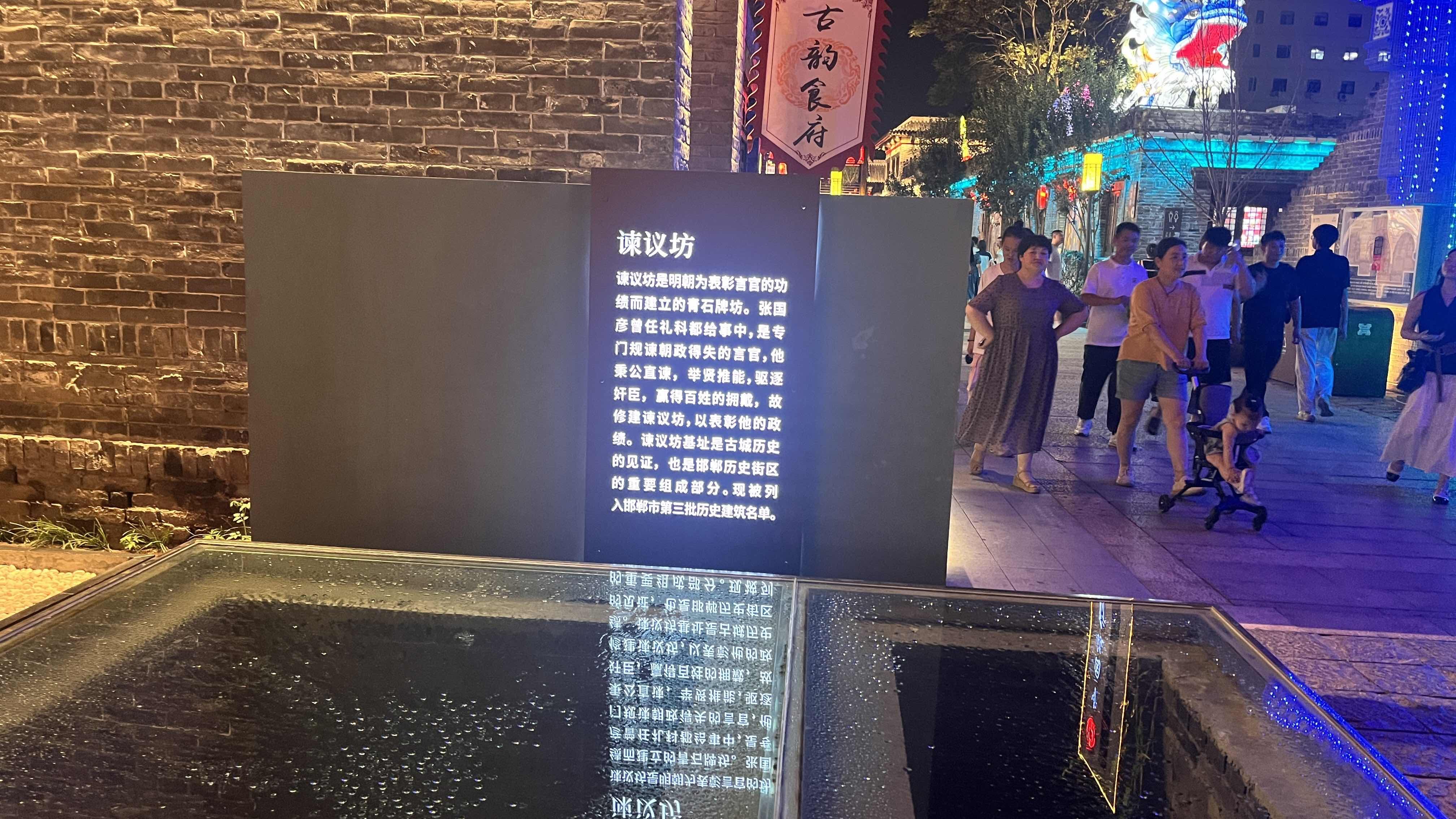 参观完广平署衙也到了午饭时间,我和孩子就在广平署衙附近找了一家叫宋海饭店,进去点了一份当地特色的烩饼和素什锦,这家饭店来吃饭的游客也不少,饭店门口还卖当地特色食品,有广府酥鱼、缯肘等,烩饼味道还可以,就是有些咸,吃完午饭后,我们就去下一个景点打卡武禹襄故居,武禹襄故居为武氏太极拳创始人--武禹襄宗师生前住所,占地面积9200平方米,属清代道光年间建筑,故居原房间75间,现存42间,分东、中、西三条南北轴线排列,其房屋错落有致,左右对称,崇脊飞檐,我们用了十几分钟就参观完了,这个景点参观的人数很少。接着我们就从东门出发打辆车去游览弘济桥,弘济桥门票35元,弘济桥位于河北省邯郸市永年区广府古城东2.5千米的东桥村,是一座单孔双敞肩式石拱桥,全部由青石砌筑砌成。在建筑结构及形式上与安济桥基本相仿。我们在弘济桥上拍了几张照留作纪念。弘济桥就是一座孤立的桥,周围没有其他景点,不一会儿就参观完了,接着我们打车去下一个景点打卡,杨露禅故居,位于广府古城南关,始建于晚清,1993年进行重修、增建。重建之后的故居分为两段院落,增设了杨氏太极宗师雕像、纪念馆。杨露禅故居参观的游客不少,他被称为太极一代宗师。最后一个打卡点就是广府古城城墙,城墙是单独收费的,我们登上城墙可以看到广府古城全貌,整齐的街道,一排排仿古建筑,给人一种穿越到2600年前的感觉!我们参观完所有的景点用了大约4个小时左右,下午坐上游1路返回市区,回酒店后休息到晚上7点左右,晚上我们去了邯郸道,邯郸道,又称串城街,是位于河北省邯郸市主城区的历史文化街区,邯郸道人山人海,都是来逛吃逛,邯郸道有几个历史著名景点:回车巷(蔺相如为避让廉颇回车让路之处,彰显“将相和”的大度与胸怀)、邯郸行宫(当年慈禧太后和光绪皇帝返京途中驻跸之地,承载着晚清历史的沧桑)、邯山书院(始建于乾隆时期,曾是冀南豫北地区的最高学府,孕育了众多人才)等。邯郸行宫已经变成卖日本酒的商店了!游览完邯郸道后,我们就回酒店休息了,这一天的行程就结束了。