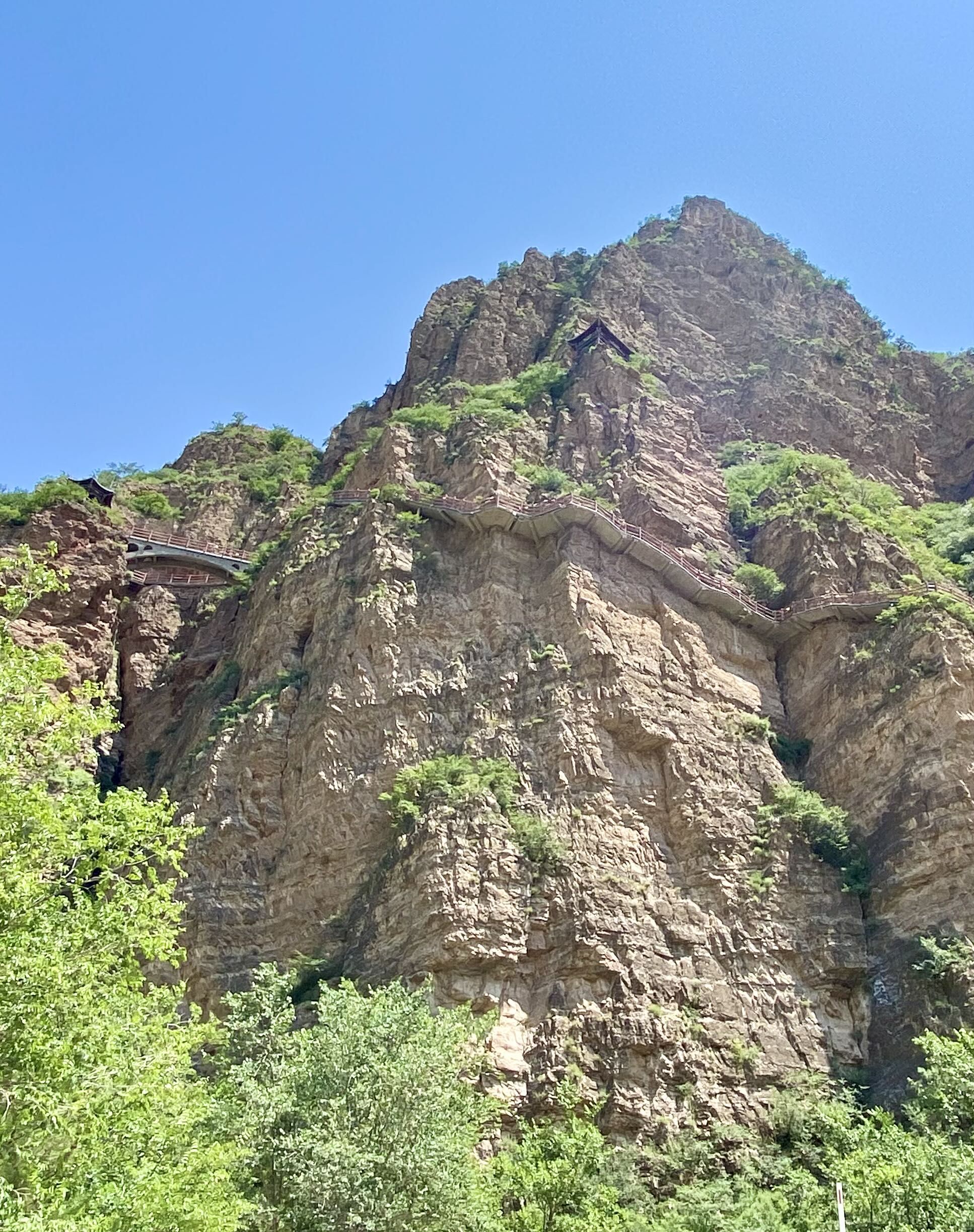 王家湾乡有个桑干河大峡谷公园,实际有两个部分组成,一个是峡谷漂流的部分,另外一个是向光洞,向光洞在路边高耸的崖壁上建设了栈道,有恐高症的朋友不易。
