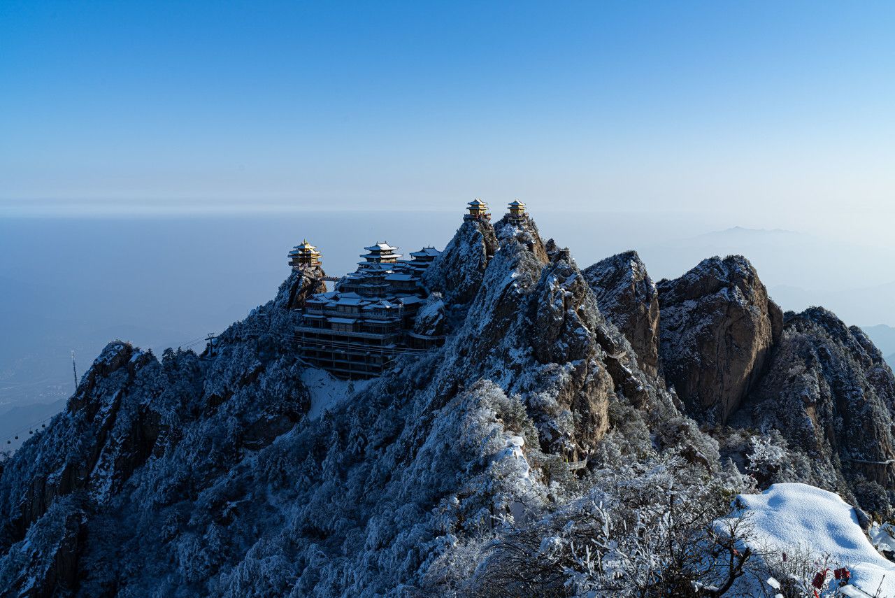 - 老君山:冬季的老君山被白雪覆盖,金顶在云海中若隐若现,宛如仙境。