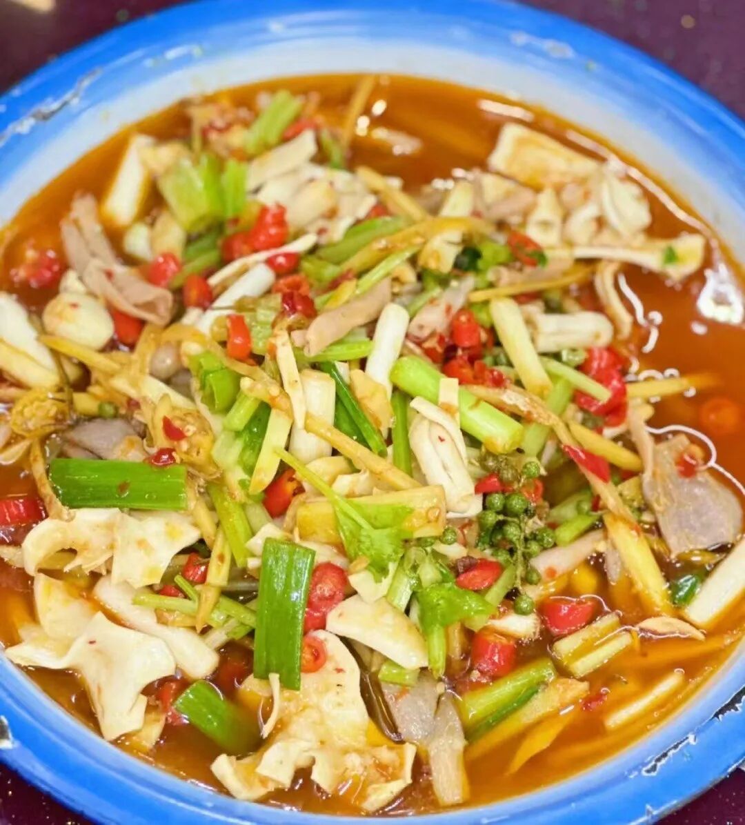 以猪肚和鸡胗为主要材料,汤清味鲜,脆嫩爽口。