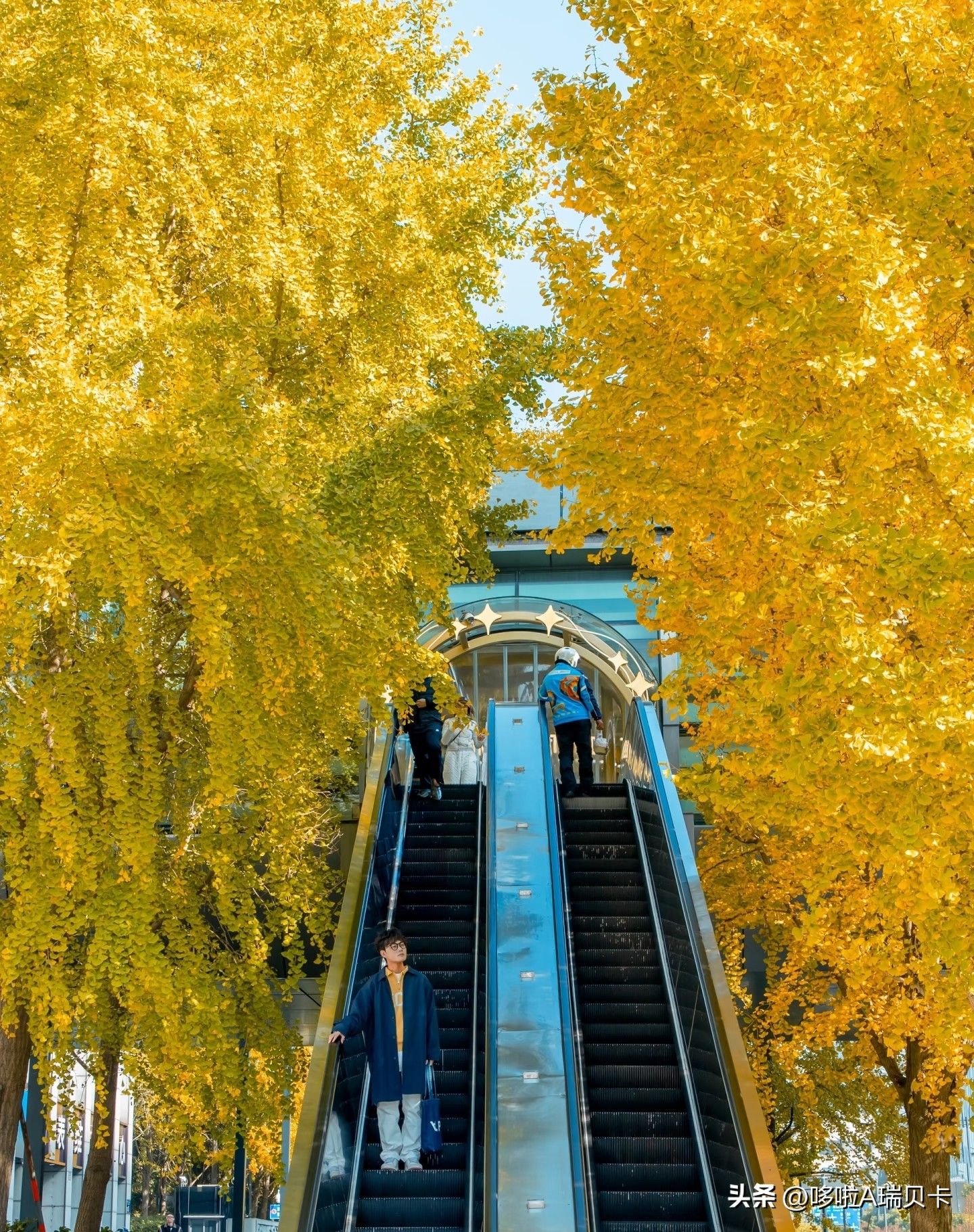 市中心的网红顶流,两棵金黄银杏包裹着现代扶梯,随手拍都是都市浪漫大片