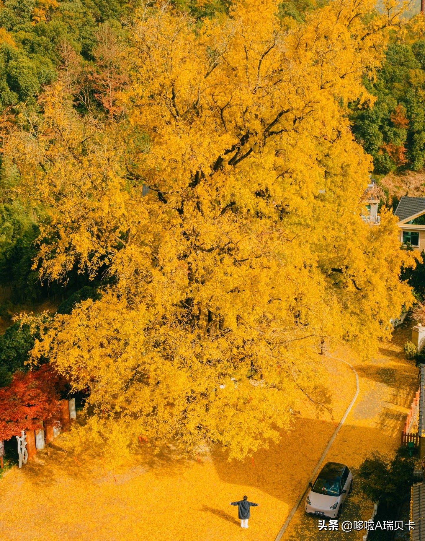 导航直达「湘溪村千年银杏公园」,园内两棵1500多岁的银杏王很惊艳,这两天都在下金色银杏雨,抓紧最后的时间!