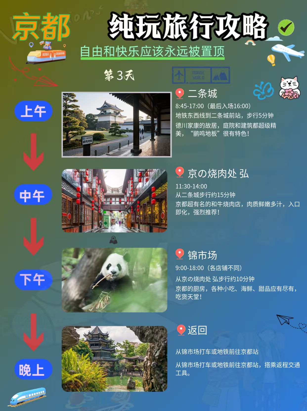 交通:从锦市场打车或地铁前往京都站,搭乘返程交通工具。