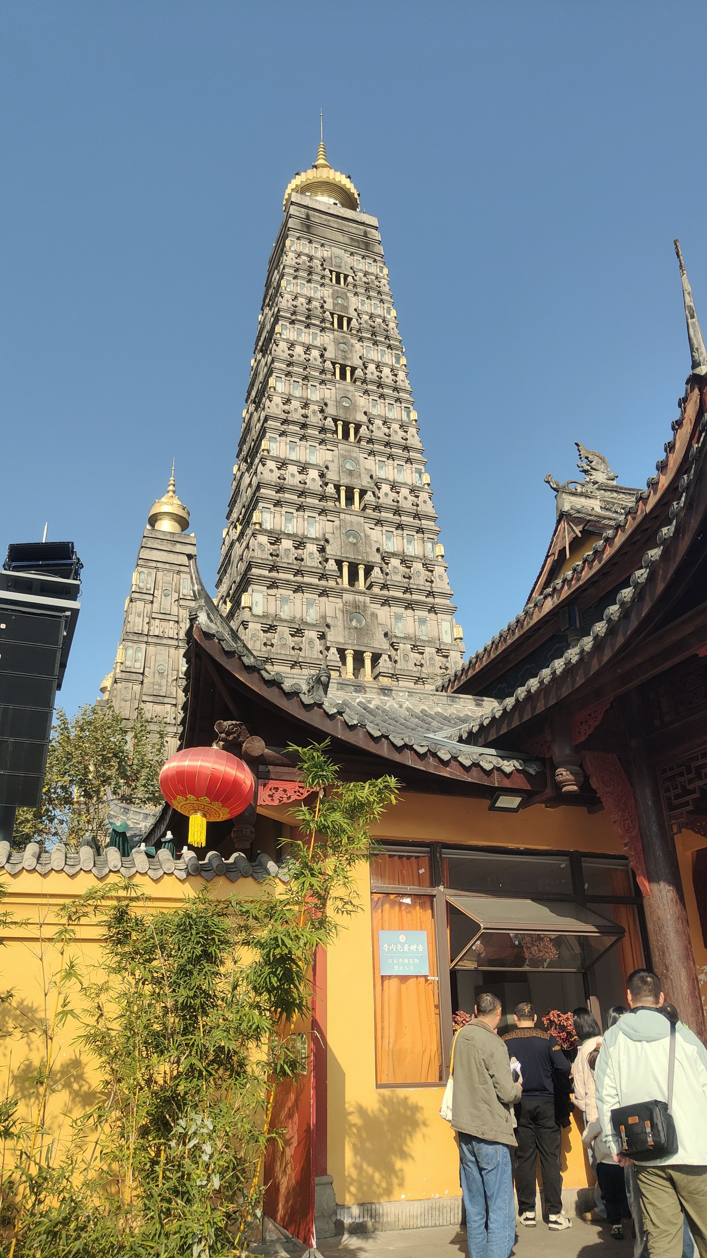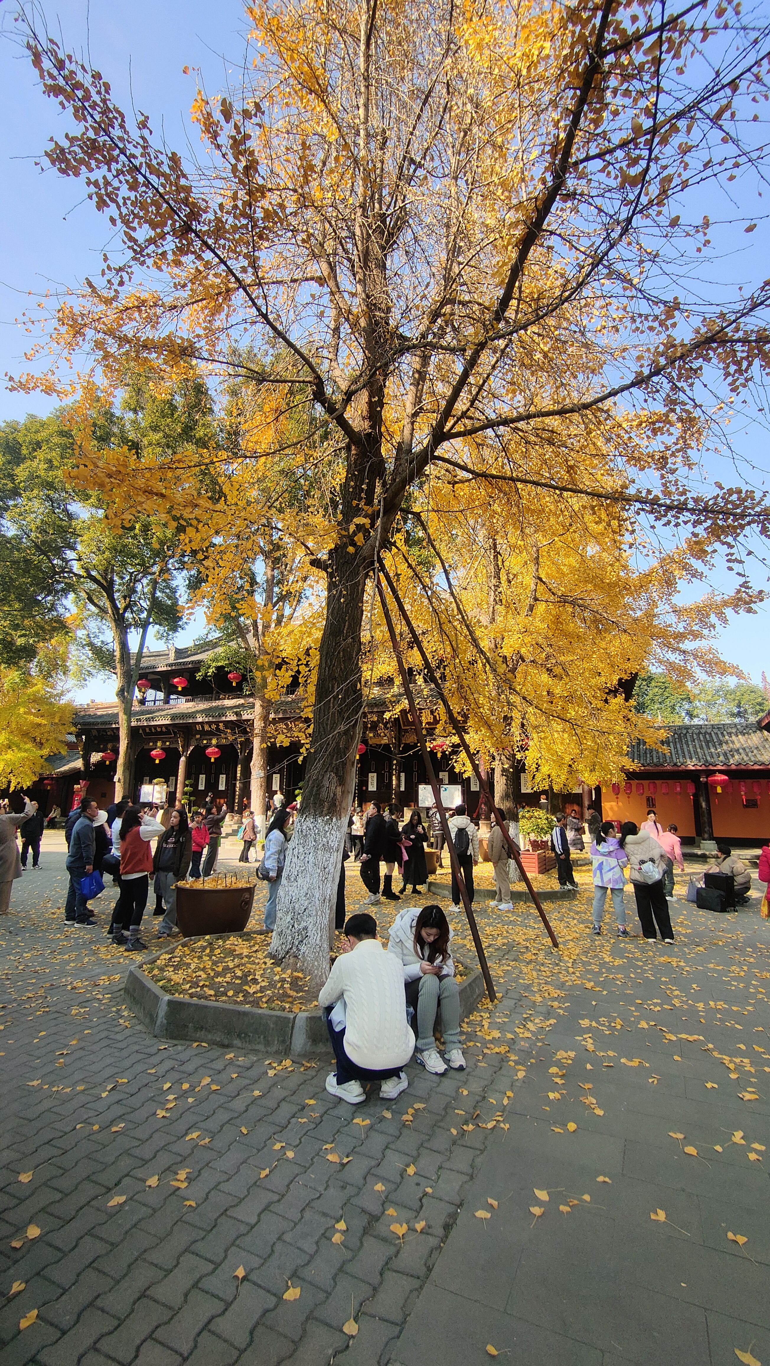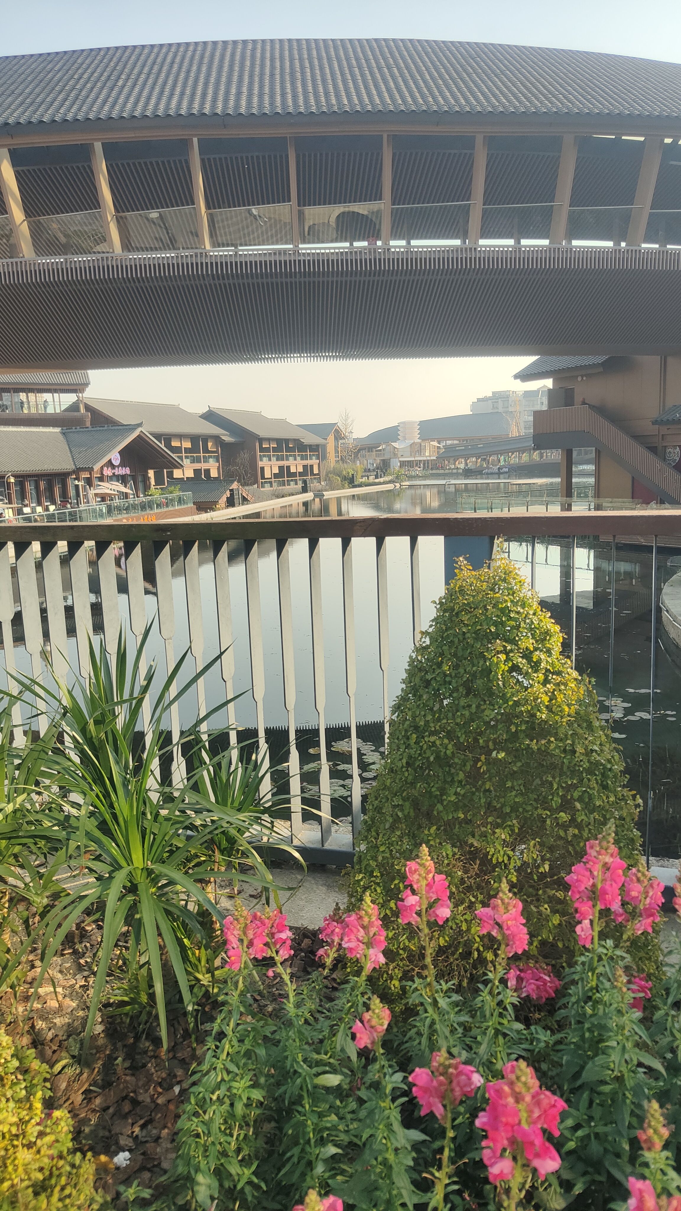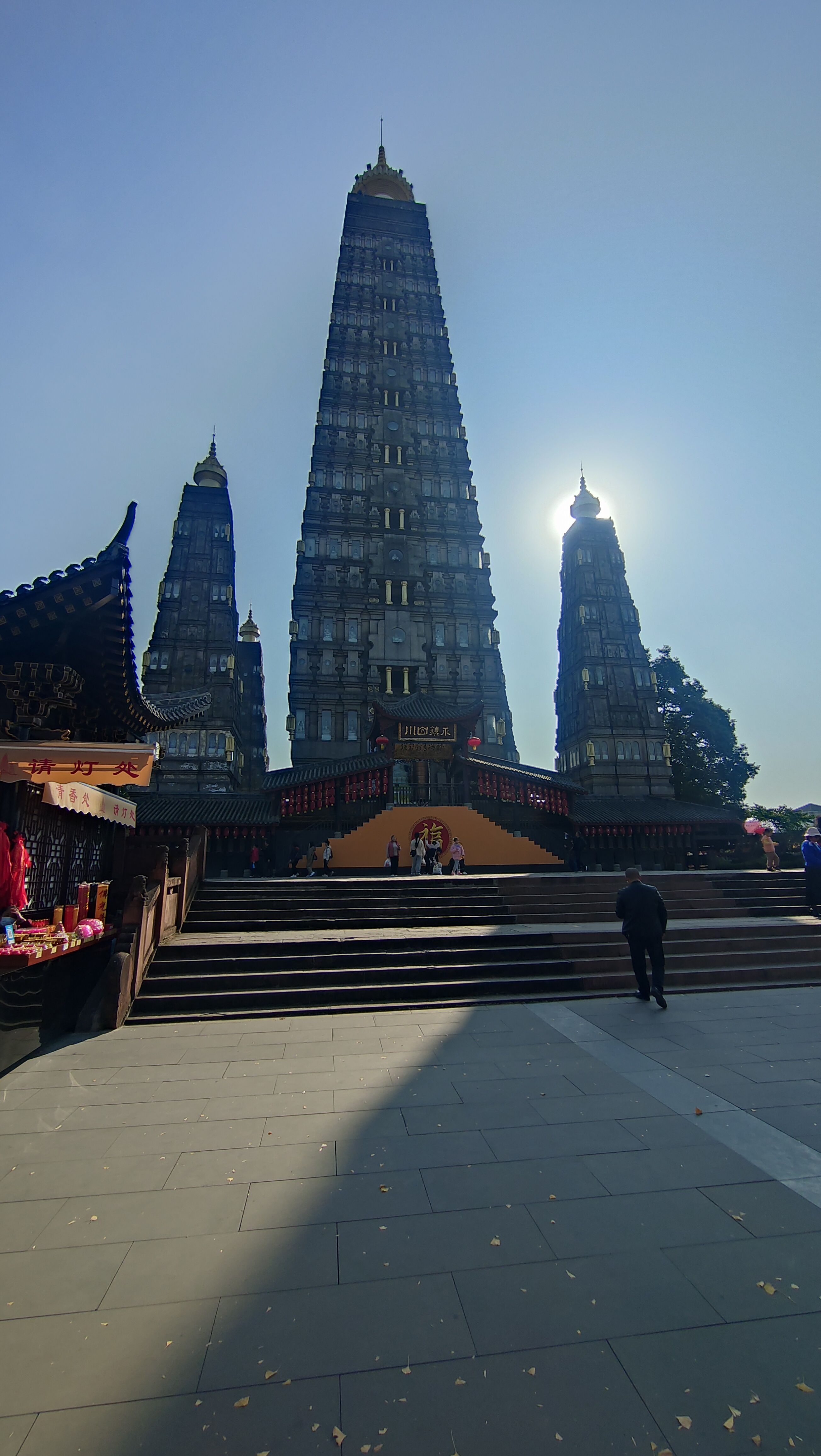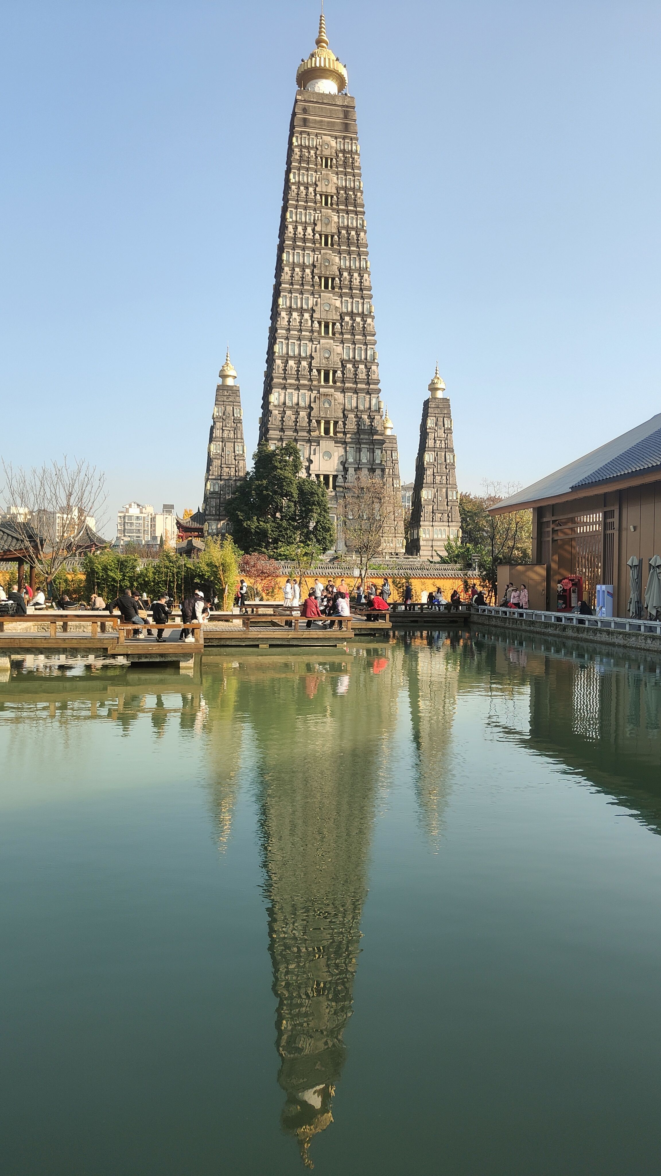 今天成都又是一个大晴天。为了不辜负阳光明媚,今天跟团游览了彭州境内的两处有名的景点。一个是白鹿音乐小镇,一个是龙兴寺及新开发的“药市水街”。若是单从观光旅游的角度出发,我对这两处景区的感觉很一般,尤其是白鹿小镇,因为几年前曾经去过,所以再次去已经没有了当初去的神秘感。最让我感到失望的是,如今的白鹿镇已是今非昔比,小镇竟然变得如此萧条,冷清。整个小镇也看不到几个游客,可能与季节不对或者是小镇搞建设有关。里面的主要街道正在做路面地砖重铺施工,路被挡住,我只好沿着小镇外围转了一圈,拍了几张照片,就出来了,让我有那么一点失落。第二个景点——龙兴寺,要比我期望的要好一些,尤其是龙兴寺里那座高耸入云的佛塔超级震撼,据说有80多米高,是中国现存19座释迦牟尼真身舍利佛塔之一,因为时间有限,我只是沿着塔的外围转了一圈就直接奔旁边的药市水街了。水街以前刚建好时也曾跟家人一起慕名前往,这次再去,好像比之前人气旺盛了许多,也可能因为今天天气好,与周末有关。今天的水街挺热闹。但跟其它去过的水街都差不多,有点似曾相识、大同小异之感。总体说,今天这两个景点没有啥惊艳之处,也没啥看点,但若是以一个无聊闲逛的心态,看待今天的整个行程,还是非常值得的,尤其是今天有好天气,和温暖阳光加持,今天跟团游的心情是轻松、愉快的。
