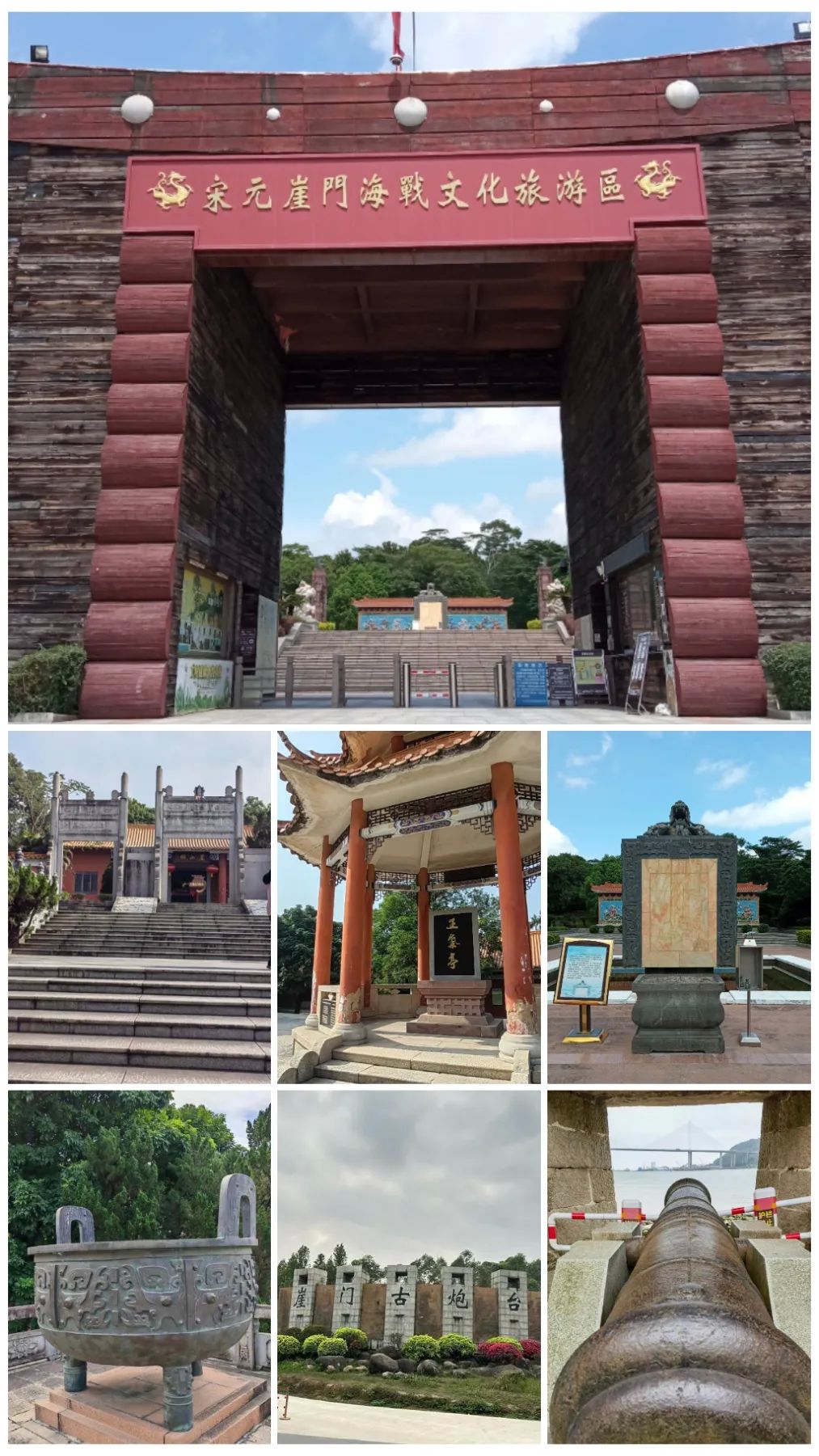 - 下午:前往宋元崖门海战文化旅游区,这里是我国首个古代海战文化主题景区,可凭吊历史,欣赏仿古战船等景点。之后前往崖门古炮台,感受历史的沧桑。