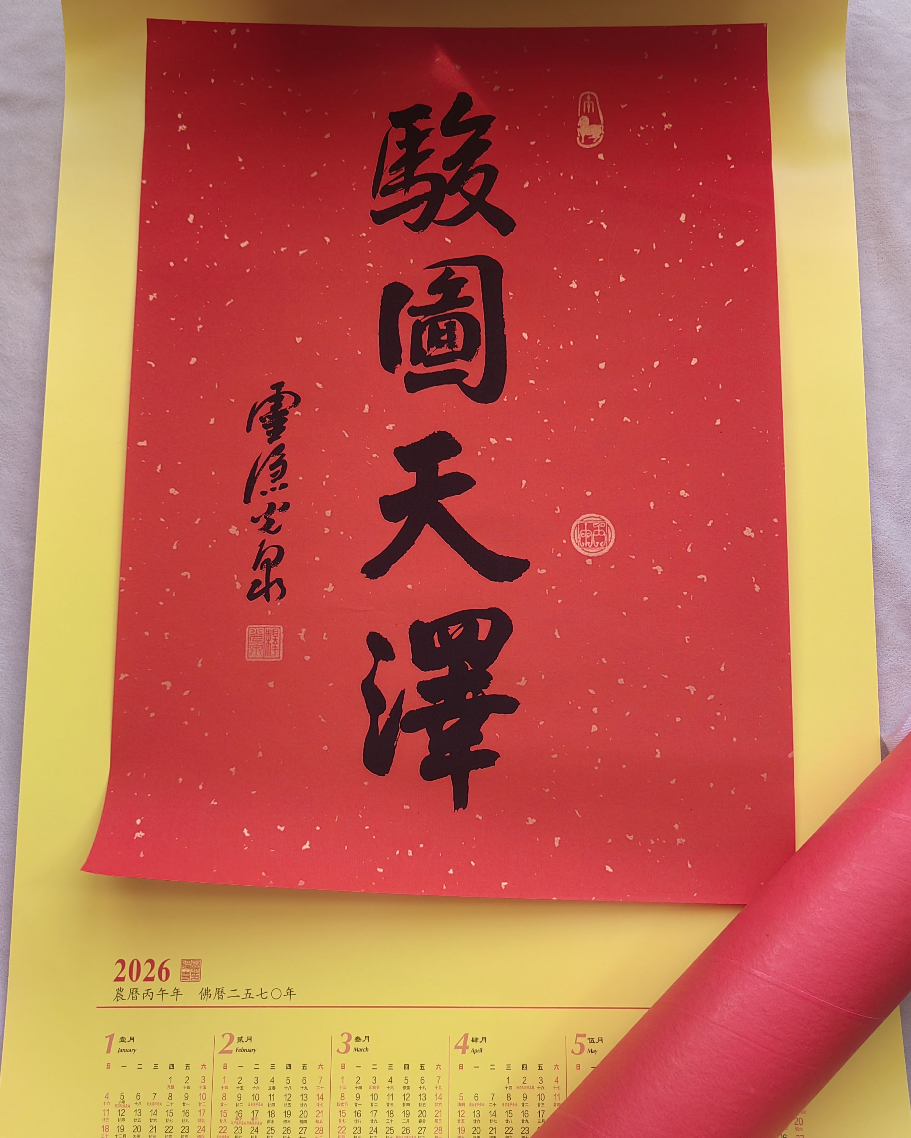 当你手拿杭州灵隐寺光泉方丈亲笔书写的新年贺词,在我们面前摆出一个京剧的pose,弯腰喊了一句:献图!