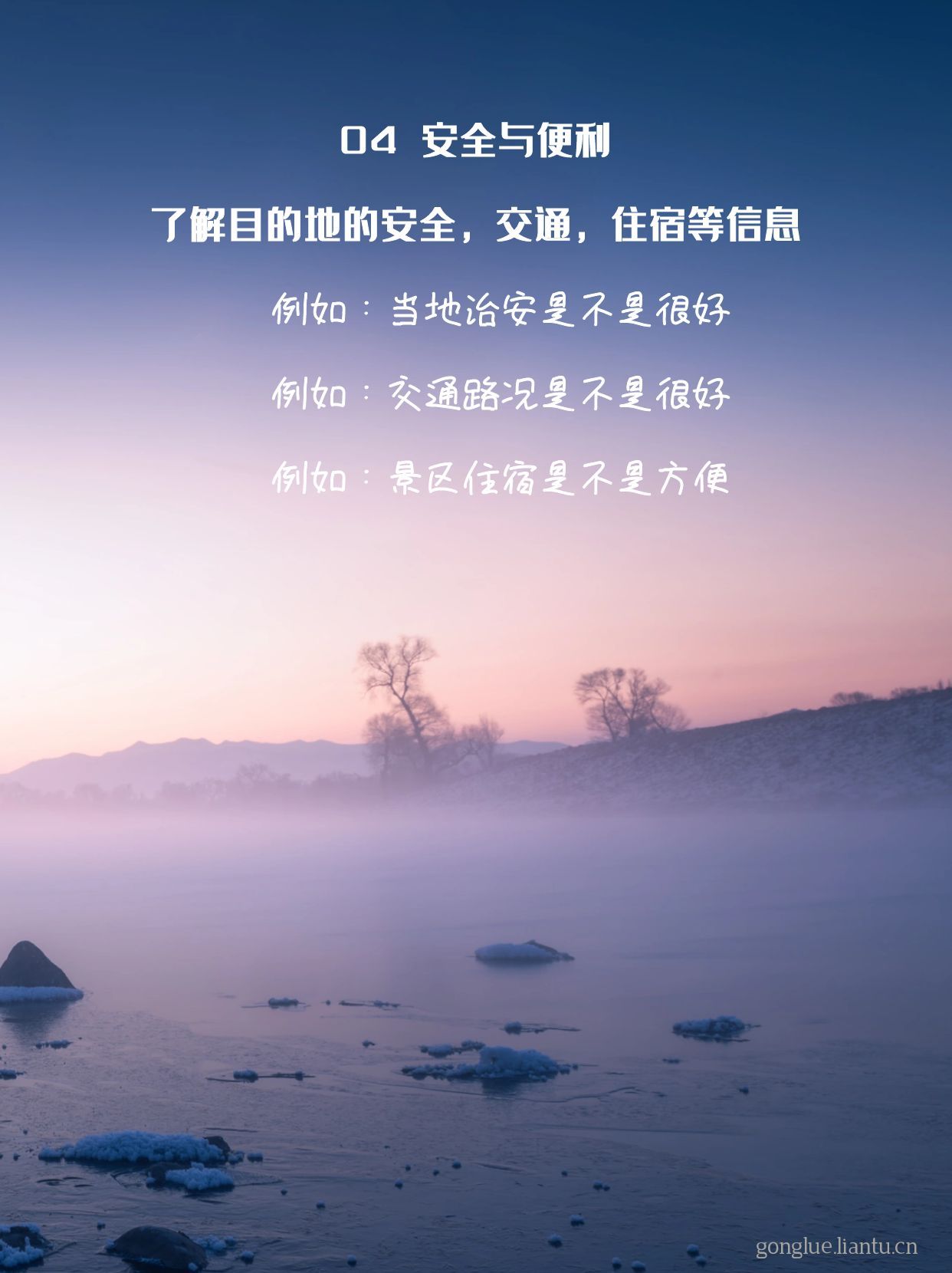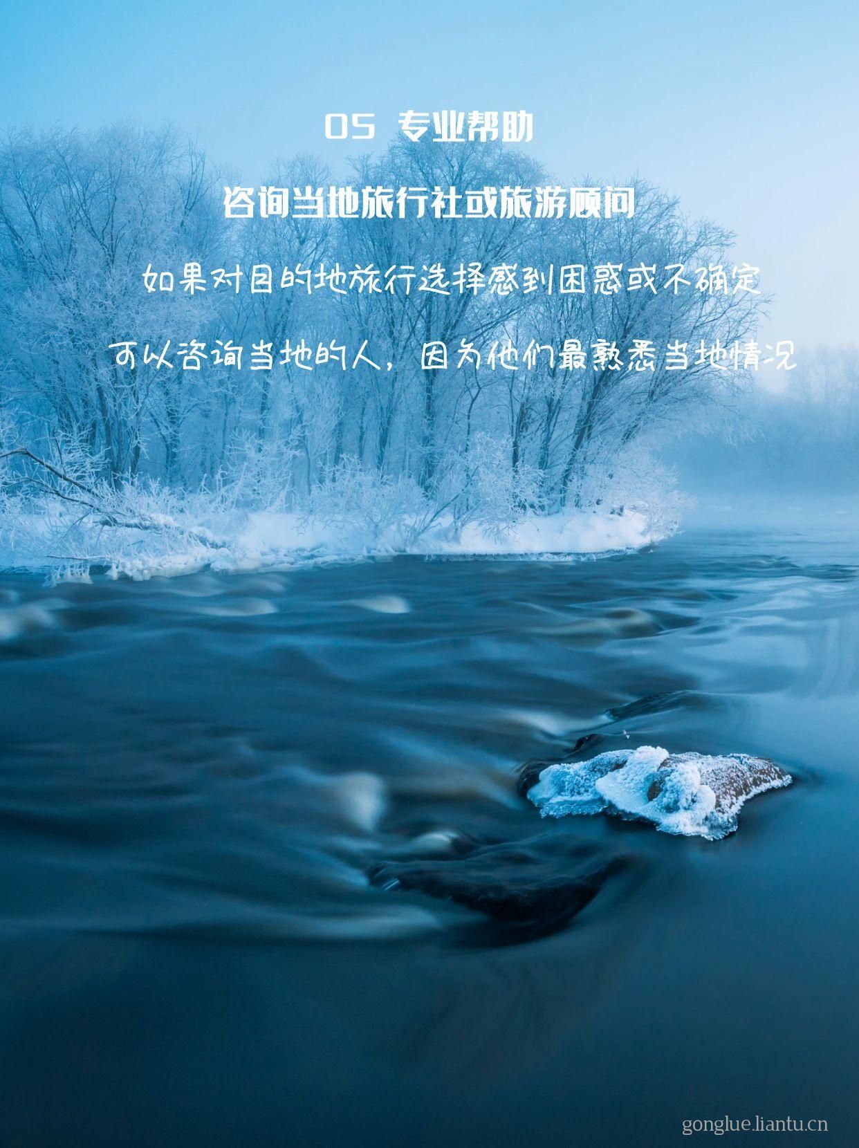 冬季温度极低,因此您需要携带足够的保暖衣物,如羽绒服、毛衣、围巾等,以抵御严寒