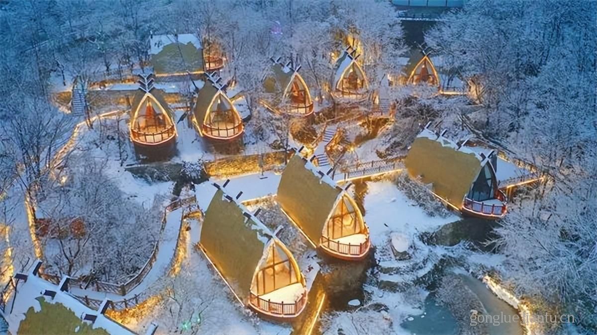 4.老界岭度假区:立冬后的老界岭,白雪飘摇而至,覆盖每一座山峰,十里彩林退却之时,也是万株雾凇盛放之日。一瞬之间,玉树琼枝、银装素裹,雪花和山峦美景遥相辉映,诗意朦胧,宛如人间仙境。老界岭滑雪场每年11月底至次年3月底为积雪期,积雪厚度60厘米以上,雪质优良,形成中原独特的林海雪原奇观,不仅可以来一场滑雪,还可以在云中民宿推开窗户饱览醉人的雪景色,独揽茂密的森林景观和丰富的动植物资源,尽享私密度假生活。