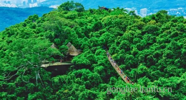 2、园区内树木葱茏,能看藤萝密布、溪水潺潺;观赏百年古藤、参天巨榕;一路虫唱鸟鸣欢闹,极尽野趣。