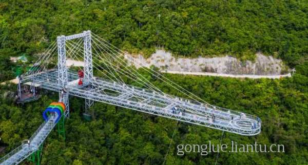 登上观景台可眺望海棠湾、蜈支洲岛和南湾猴岛,园内特色的“踏瀑戏水”活动刺激指数爆表。