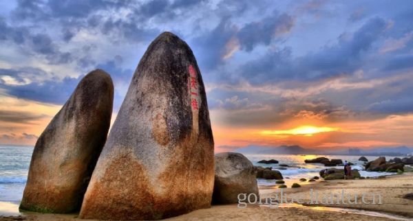 最有名的是刻有“天涯”和“海角”的两块巨石,它们一直被视为爱情的象征,也是三亚的标志性景观之一。