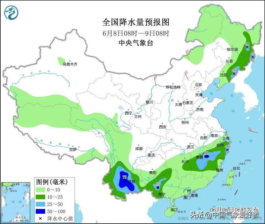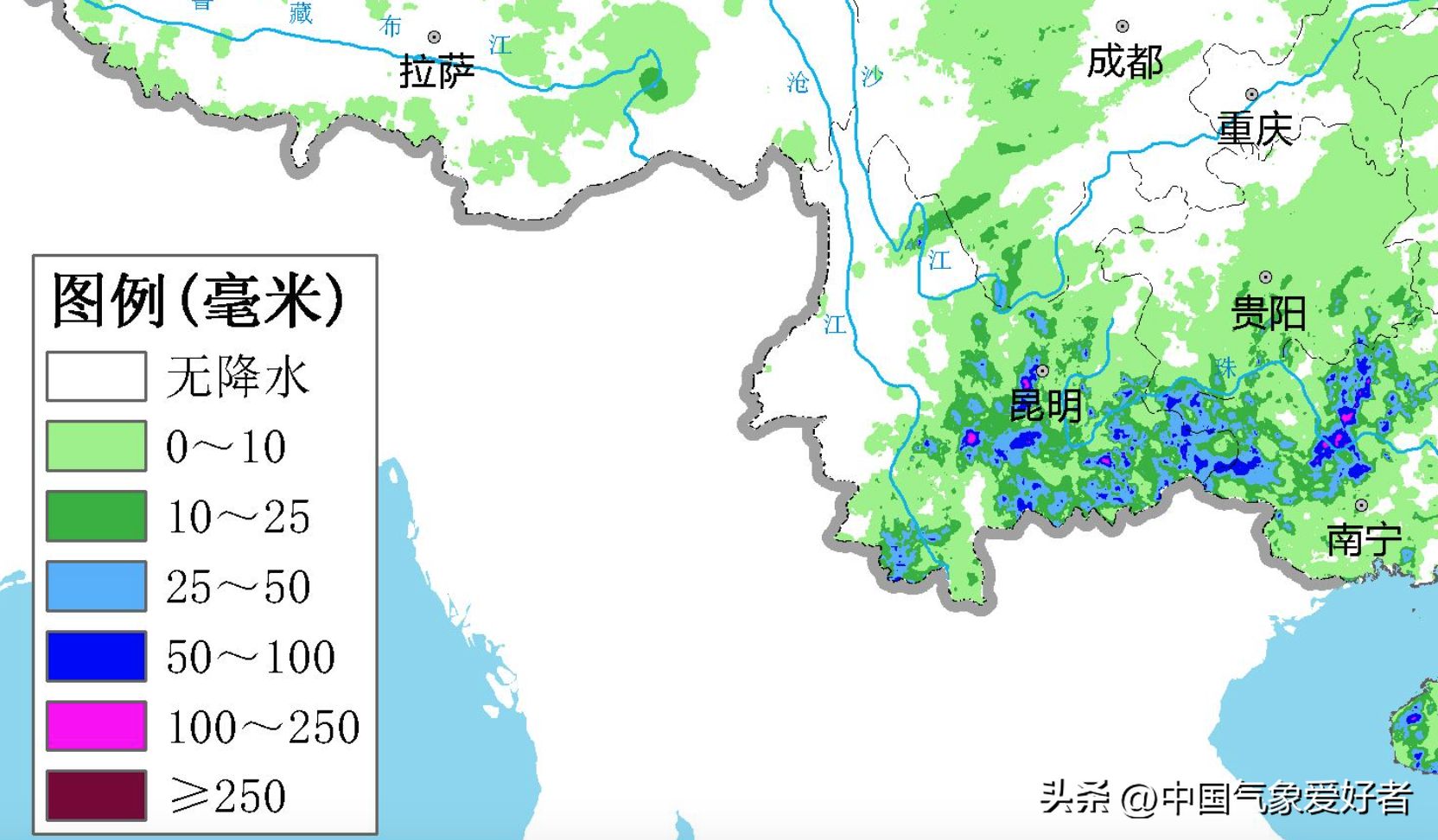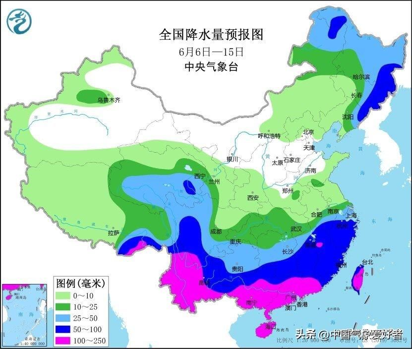 中期天气预报中则指出,未来10天,未来10天(6月6-15日),江南东部和南部、华南、四川西部、贵州南部、云南及西藏东南部等地累计降水量有40~70毫米,其中四川南部、云南西部和南部、华南大部等地的部分地区有90~150毫米,局地200毫米以上;东北地区西北部和东南部、青海东南部等地累计降水量有30~60毫米。与常年同期相比,云南大部、四川南部、华南西部和南部、内蒙古东北部、东北地区西北部和南部等地累计降水量偏多3~8成,局部偏多1倍左右。从这一预报上看,6月中旬和下旬,云南更是可能成为南方降雨最多的省份之一。