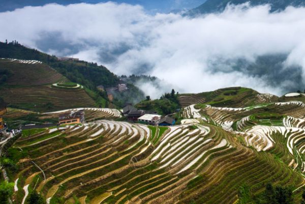 龙脊梯田位于广西桂林市龙胜县境内,被誉为“世界梯田之冠”,还曾上榜CNN评选的“中国最美的40个旅行地”。