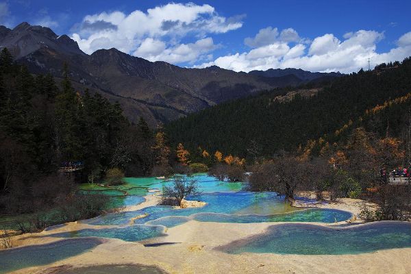 九寨沟位于四川省阿坝藏族羌族自治州境内,是国家5A级景区,也是世界自然遗产、世界生物圈保护区、国家地质公园。这里有着世界上最美丽的水域景观,如五彩池、镜海、诺日朗瀑布等,水色变幻无穷,清澈见底,如同天上人间。