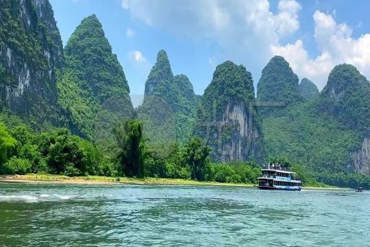 桂林漓江景区是世界上规模大、风景最美的岩溶山水游览区,是喀斯特地形发育最典型的地段,漓江水一年四季晶莹透亮酷似一条青罗带,蜿蜒于万千奇峰间,两岸山峰奇异峻美。