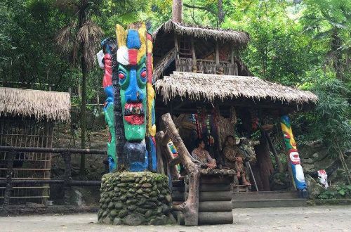 图腾古道位于著名的“十里画廊”中的位置。在烟雨峰岳中,皮里黝黑的甑皮人与漓江为伍,与青山为伴,或渔猎或采集,使用的依然是古朴的石器、骨器、原始的陶器、蚌器。在节奏明快的“妖鼓”下,穿着色彩斑斓的兽皮,手持锋利的长矛在山林里狩猎,烧蛇烤蚌为食,长唱着人与自然和谐的漓江渔歌和桂山猎谣。