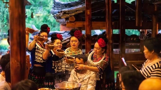 千户苗寨之行给我很大的感受是苗族人非常热情好客,他们穿的少数民族特色的服饰非常漂亮。不过,和他们相处、交流的话还是要注意入乡随俗的,例如不能吃牛肉、要喝酒、长桌宴席要上完所有菜式才能发筷子……等等。