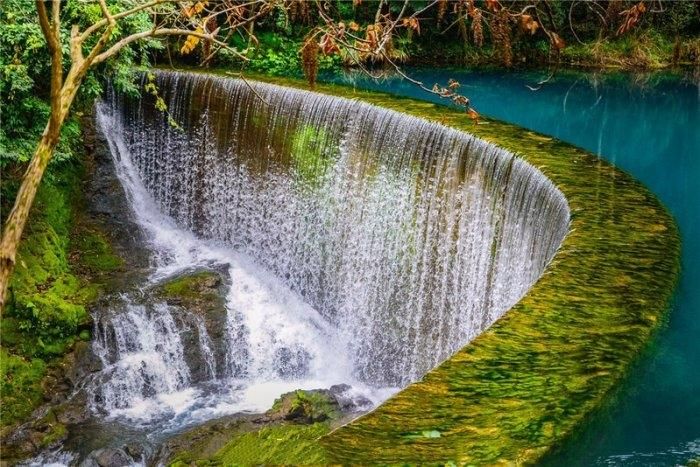 黄果树瀑布还有陡坡塘瀑布和天星桥值得去看看!陡坡塘瀑布是黄果树瀑布上游1公里处,瀑顶宽105米,高21米,是在黄果树瀑布群中瀑顶最宽的瀑布!我们去的时候水量挺大的,水流像脱缰的野马伴随着水雾飞泻而下。小唐告诉我们:经过左侧洞穴时发出低沉的吼叫声,所以当地人一般称陡坡塘瀑布为吼瀑。