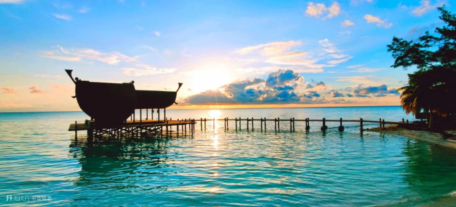 无瑕疵的自然环境,沙滩细柔,透蓝的海底,一排排建立在海上的水屋,就像在大海中的一串明珠,打开房门,扑面而来的就是清爽的海风和蓝得透绿的大海。