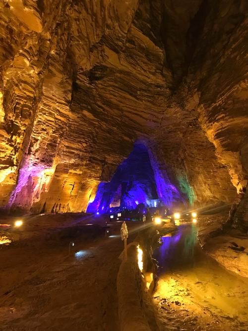 2、腾龙洞:特色梦幻激光秀 壮观腾龙大瀑布,入口的瀑布像巨龙一样,拍照各种出片