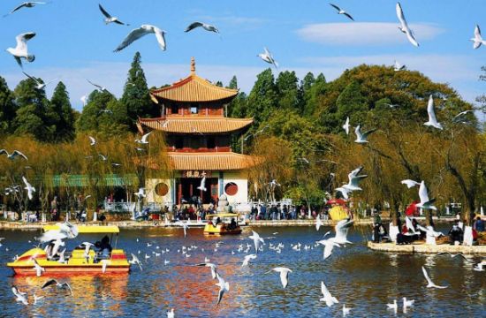 1、滇池:滇池是昆明的象征之一,被誉为“云南之眼”,是云南省最大的淡水湖。在这里可以欣赏到湖光山色,同时可以游览湖畔的西山和龙门,领略自然风光和壮观的龙门石窟。滇池也是观鸟胜地,吸引了大量鸟类栖息和迁徙。