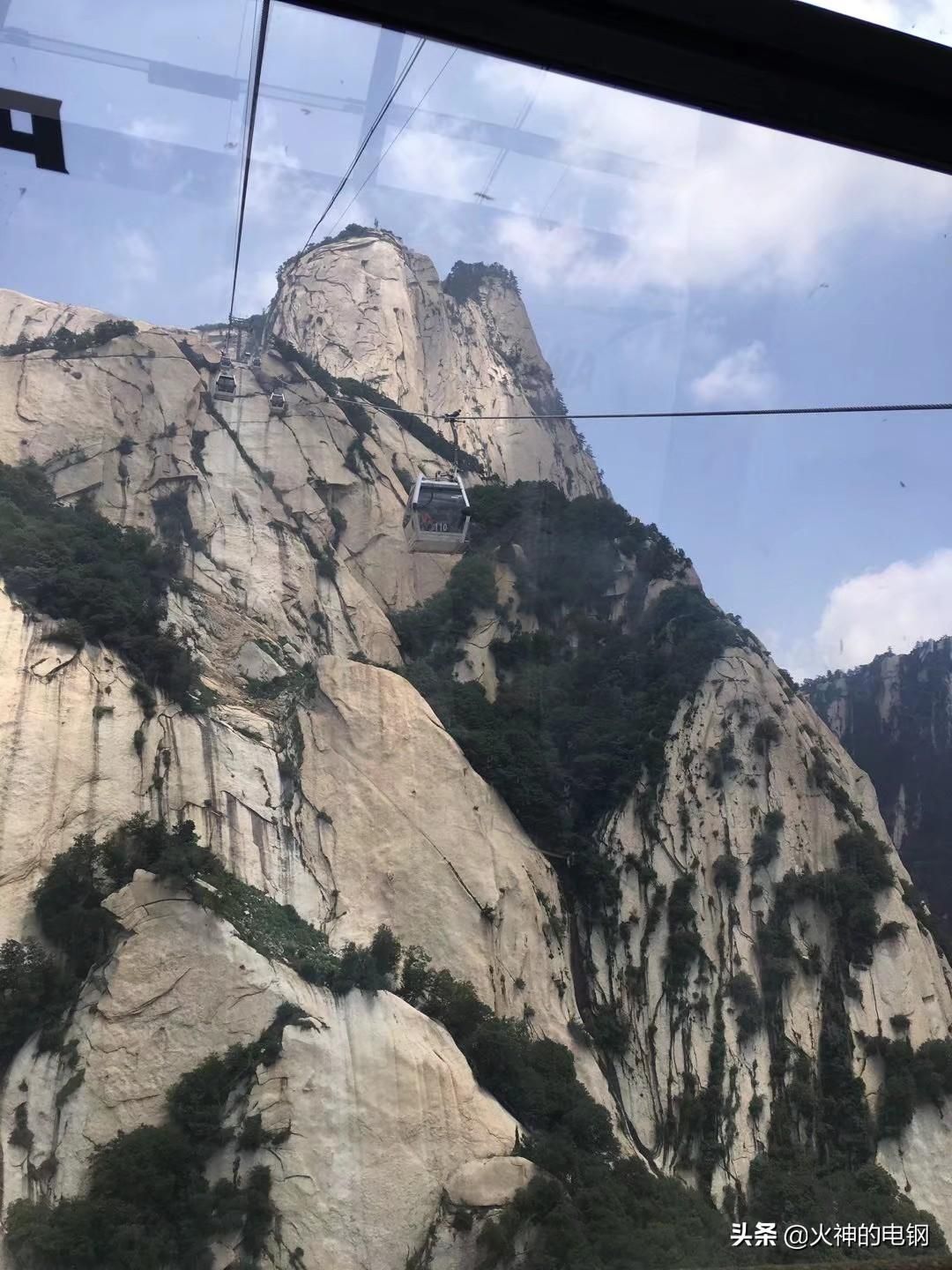 第二天一早六点起来上东峰观景台看日出,接着休息到九点多,饭店旁就是著名的鹞子翻身,胆子大的朋友可以去挑战。从东峰下来一段再上去一段就到达南峰,为华山最高,海拔2100多米,这里有很多卖烧烤小吃的地方,最最著名的长空栈道就在不远处,不建议大家去挑战,我从边上往下看一眼就吓得魂飞魄散。南峰往下走一段就来到西峰了,据说这里景色最美,但我不这么认为,我最喜欢东峰和南峰。西峰有沉香劈山救母的地方,值得一看。到此我就差不多游览完毕了,已经到了中午一点,遗憾的是中峰没有上,第一天北峰上大雾,总得来说还是不错。我没有原路返回,因为身体已经被掏空。乘坐西峰索道,180元左右,20分钟下山,期间有种坐飞机的既视感,缆车下万丈深渊,不恐高的朋友可以体验下。下了缆车,坐下山大巴前往游客中心。二日游到此结束,回到高铁站吃了当地特色的肉夹馍和擀面皮,心情很愉悦。