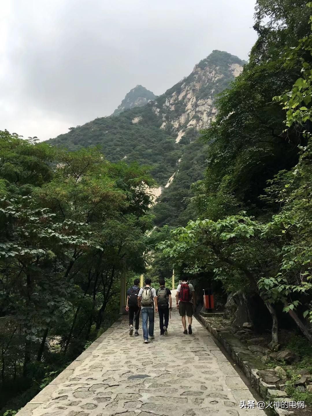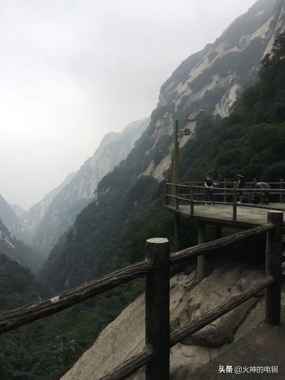 之后的山路不是很难爬,经过黑虎洞,群仙观,接着开始上老君犁沟,这是一段非常难走的路,又陡又长,为什么?因为上去之后就到北峰啦。我记得我上老君犁沟期间原地站着休息了三四次,有点泰山十八盘的感觉,当然,它比十八盘还要陡峭的多。我看见一个挑山工背着重重的货超过了我,我这才给自己打气,跟着他爬完了老君犁沟。