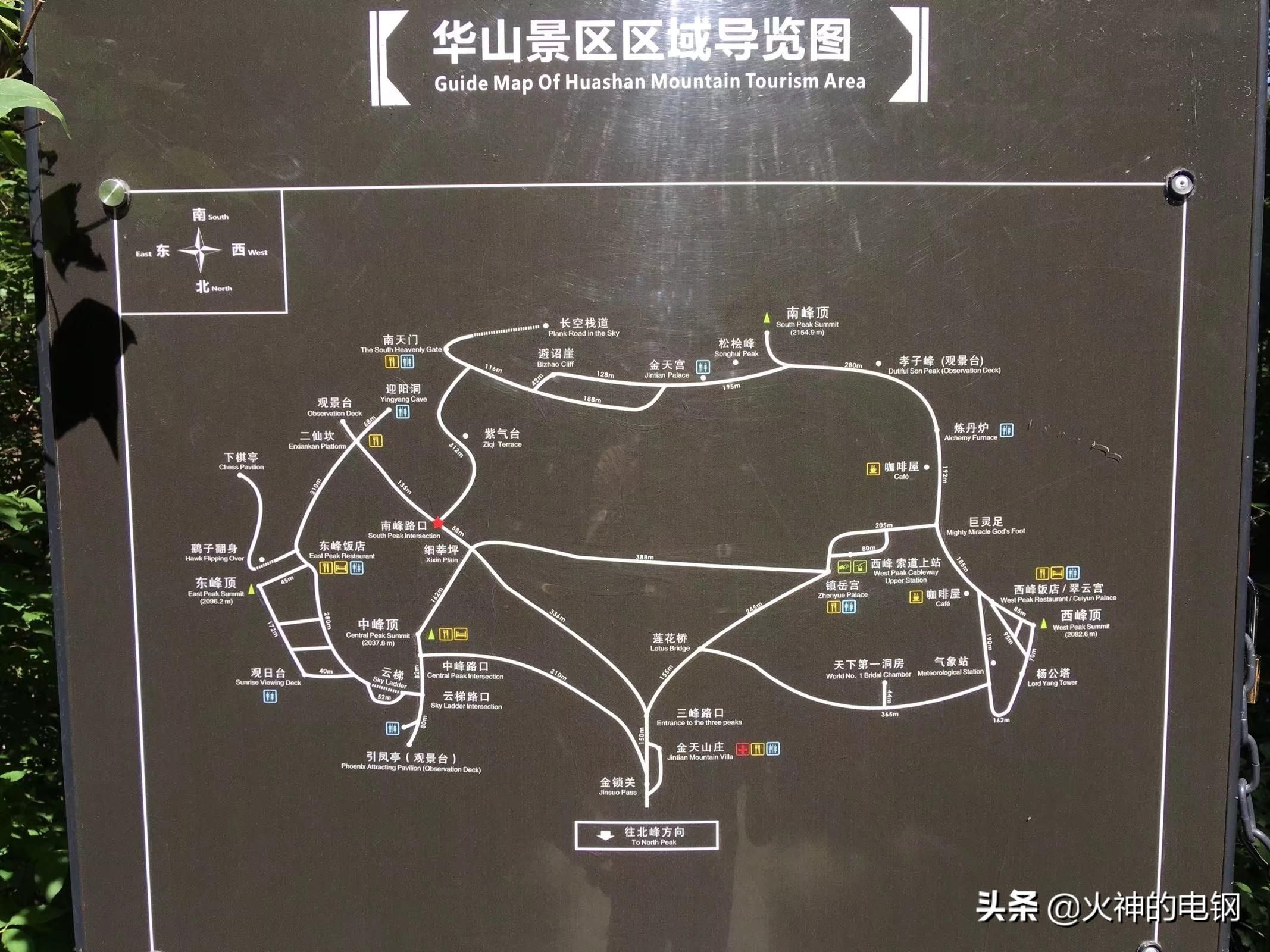 两日游徒步路线:由山脚玉泉院,走自古华山一条路,北峰--东峰--南峰--西峰,原路徒步下山。