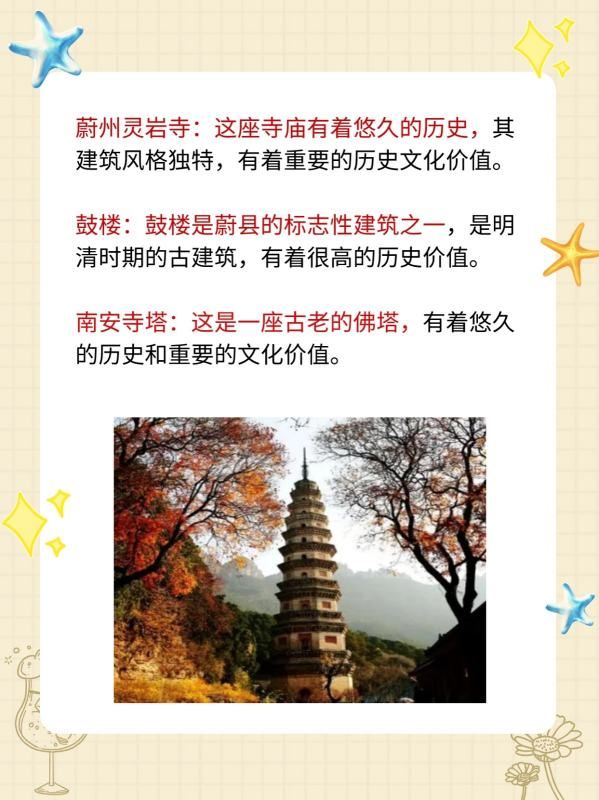 蔚州灵岩寺:这座寺庙有着悠久的历史,其建筑风格独特,有着重要的历史文化价值。